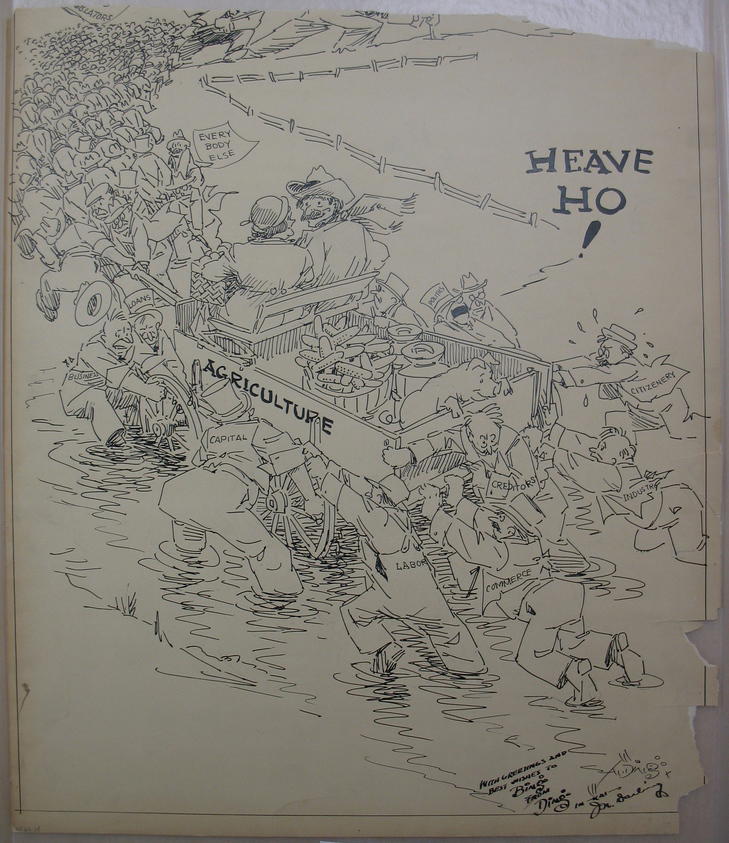Jay Darling (American, 1876–1962). Seems as Though Something Ought to Start Pretty Soon, n.d.. Ink and graphite on paper, sheet (uneven top edge): 26 5/8 x 22 5/8 in. (67.6 x 57.5 cm). Brooklyn Museum, Gift of Mrs. Harold J. Baily, 67.62.14. (Photo: Brooklyn Museum)