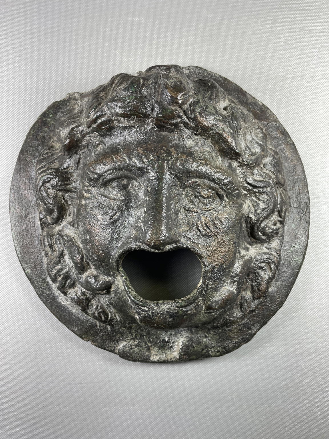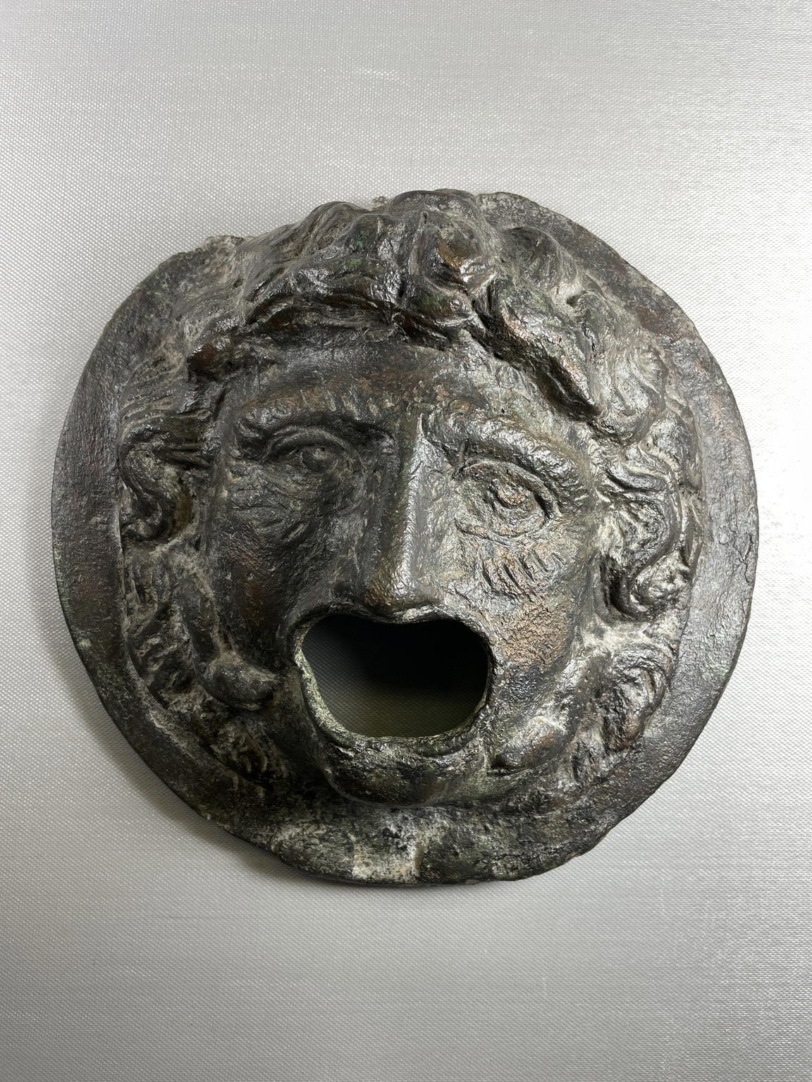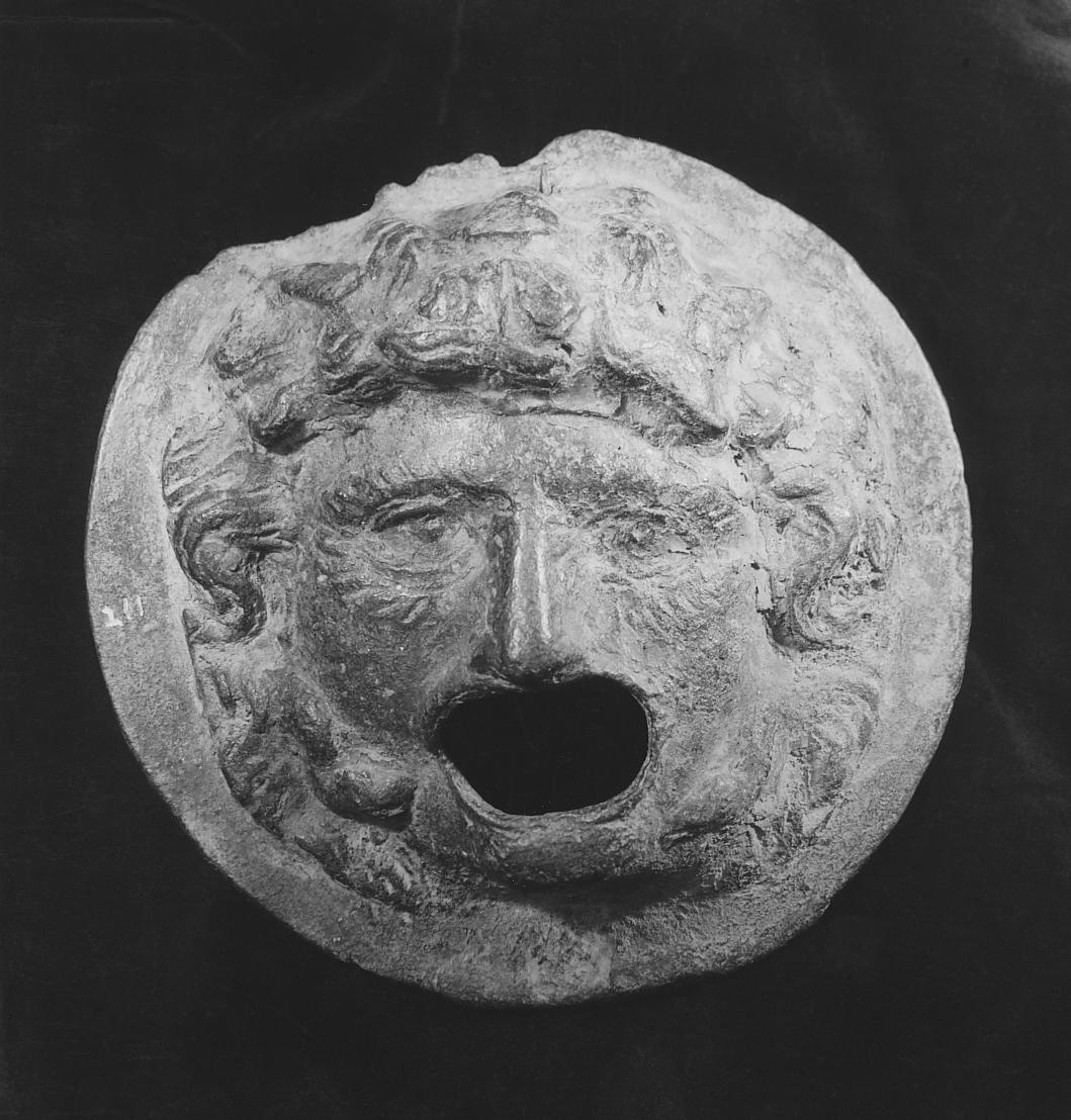 Graeco-Egyptian. Medusa Mask, Bronze or lead, 9 5/8 × 9 7/8 × 3 1/8 in. (24.5 × 25.1 × 8 cm). Brooklyn Museum, Gift of Evangeline Wilbour Blashfield, Theodora Wilbour, and Victor Wilbour honoring the wishes of their mother, Charlotte Beebe Wilbour, as a memorial to their father, Charles Edwin Wilbour, 16.111. (Photo: Brooklyn Museum)