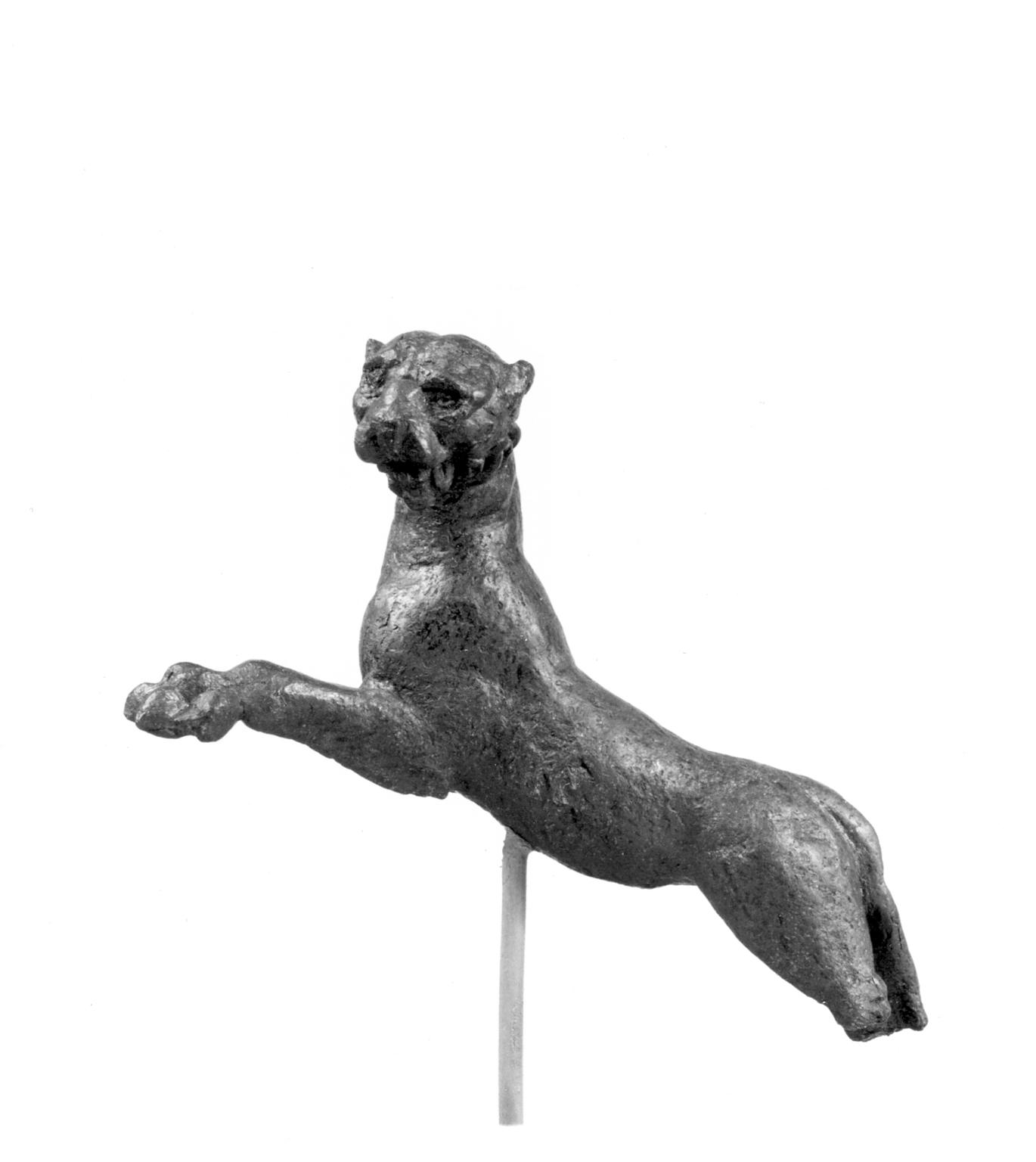 Possibly Egypto-Roman. Figure of a Running Leopard or Panther, 2nd century C.E.. Bronze, 1 15/16 × 1 3/8 × 3 7/16 in. (5 × 3.5 × 8.7 cm). Brooklyn Museum, Gift of Evangeline Wilbour Blashfield, Theodora Wilbour, and Victor Wilbour honoring the wishes of their mother, Charlotte Beebe Wilbour, as a memorial to their father, Charles Edwin Wilbour, 16.393. (Photo: Brooklyn Museum)