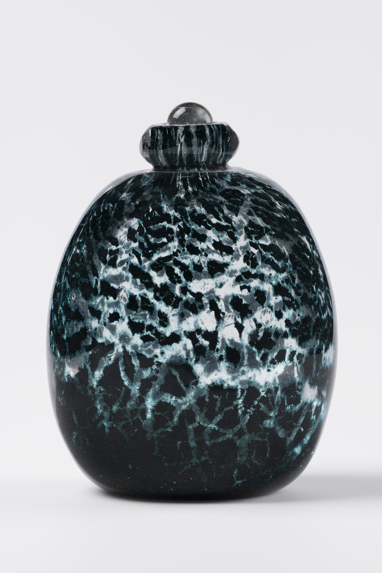 Maurice Marinot (French, 1882–1960). Bottle with Stopper, ca. 1923–date provided by donor. Blown glass, 5 15/16 x 4 1/4 in. (15.1 x 10.8 cm) Height w/out stopper: 5 5/8 Height of stopper: 17/16. Brooklyn Museum, Gift of Florence Marinot, 71.78.2a-b. (Photo: Brooklyn Museum)