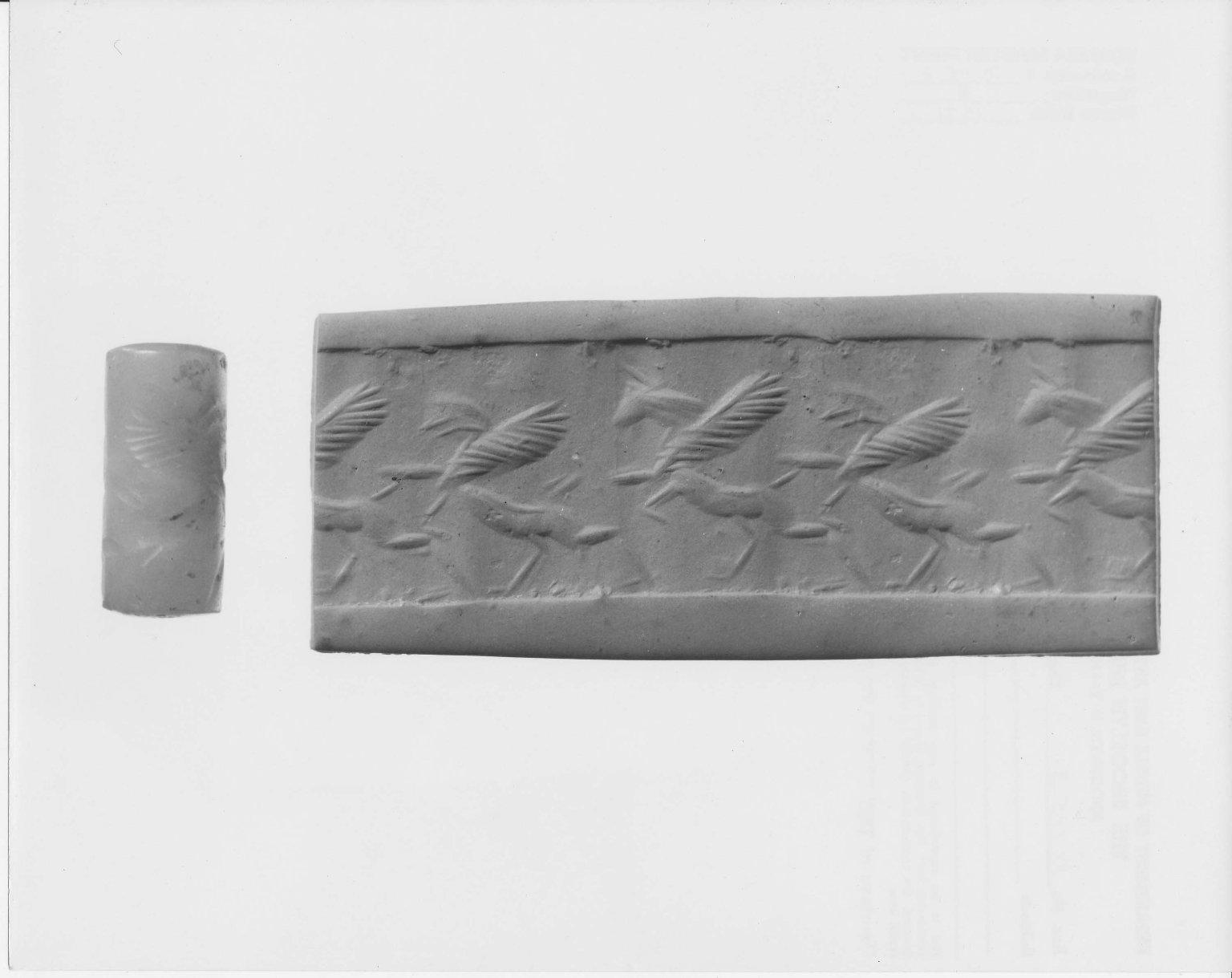 Ancient Near Eastern; Neo-Babylonian. Cylinder Seal, 7th–6th century B.C.E.. Quartzite, 7/8 x Diam. 3/8 in. (2.2 x 1 cm). Brooklyn Museum, Twentieth-Century Fox Fund, 71.115.3. (Photo: Brooklyn Museum)
