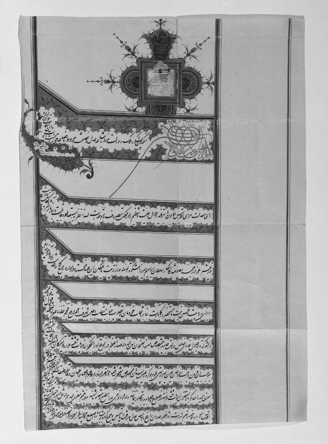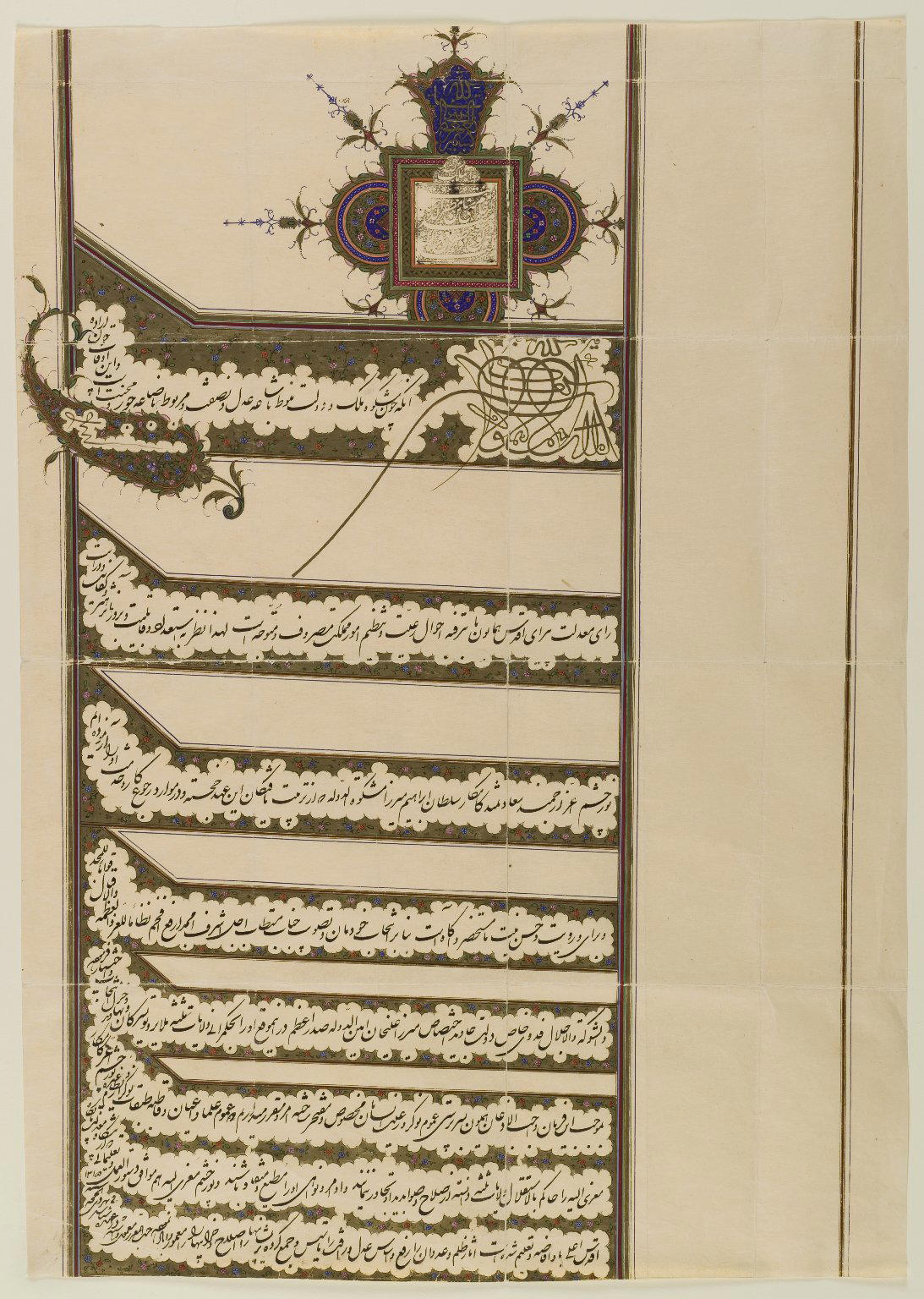 Firman (Royal Edict) with the Seal of Muzaffar al-Din Shah Qajar, A.H. 1315/1897 C.E.. Ink and gold on paper, 21 1/4 x 14 13/16 in. (53.9 x 37.6 cm). Brooklyn Museum, Gift of Mr. and Mrs. Charles K. Wilkinson, 72.26.11. (Photo: Brooklyn Museum)