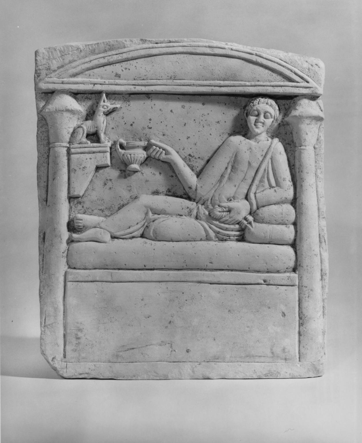 Roman. Funerary Stela, ca. 2nd century C.E.. Limestone, 14 3/4 × 12 3/16 × 3 1/16 in. (37.5 × 31 × 7.8 cm). Brooklyn Museum, Charles Edwin Wilbour Fund, 72.60. (Photo: Brooklyn Museum)