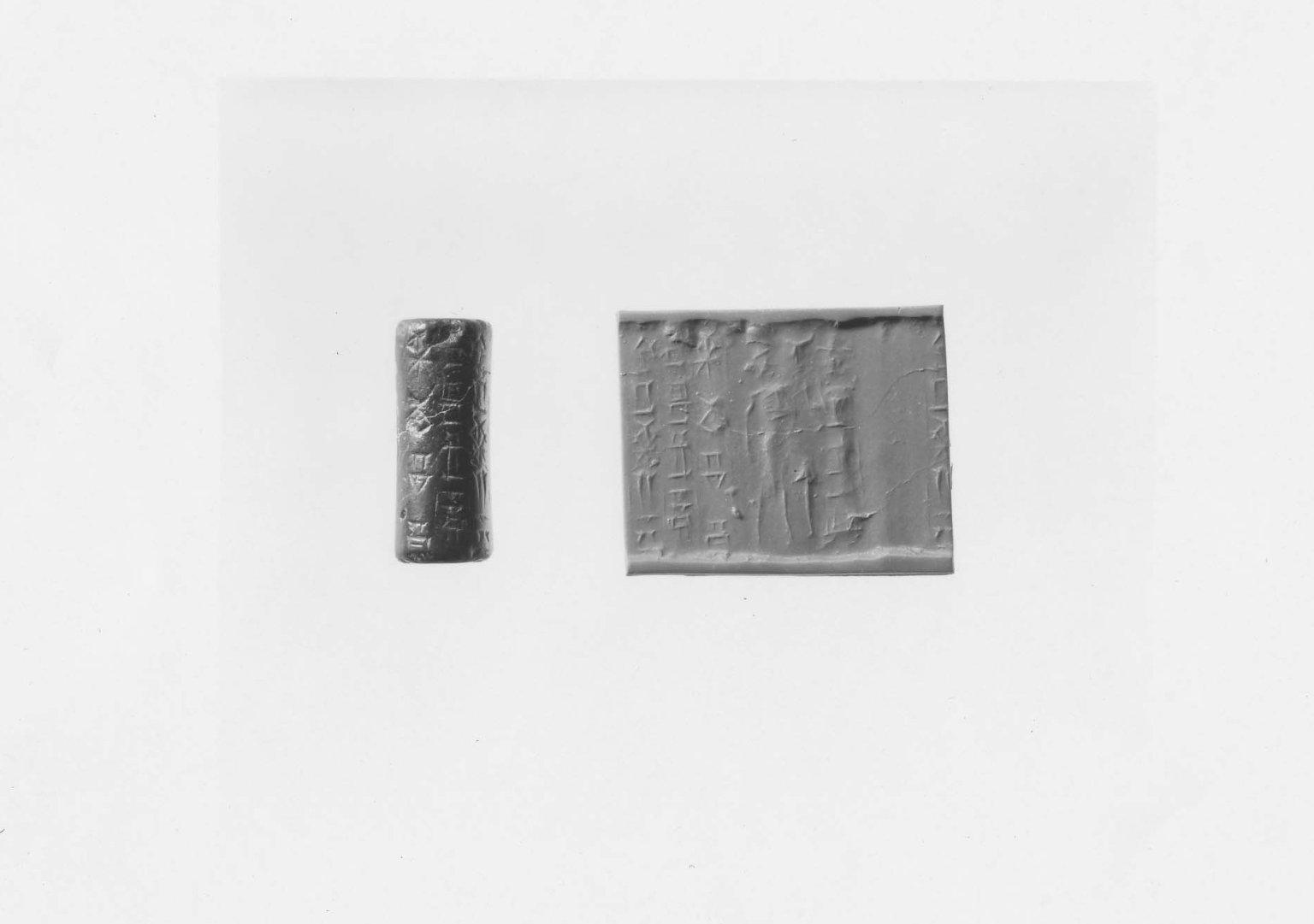Ancient Near Eastern; Kassite. Cylinder Seal, 16th century B.C.E.. Serpentine, 1 1/4 x Diam .1/2 in. (3.2 x 1.3 cm). Brooklyn Museum, Leon and Harriet Pomerance Foundation, 73.31.5. (Photo: Brooklyn Museum)
