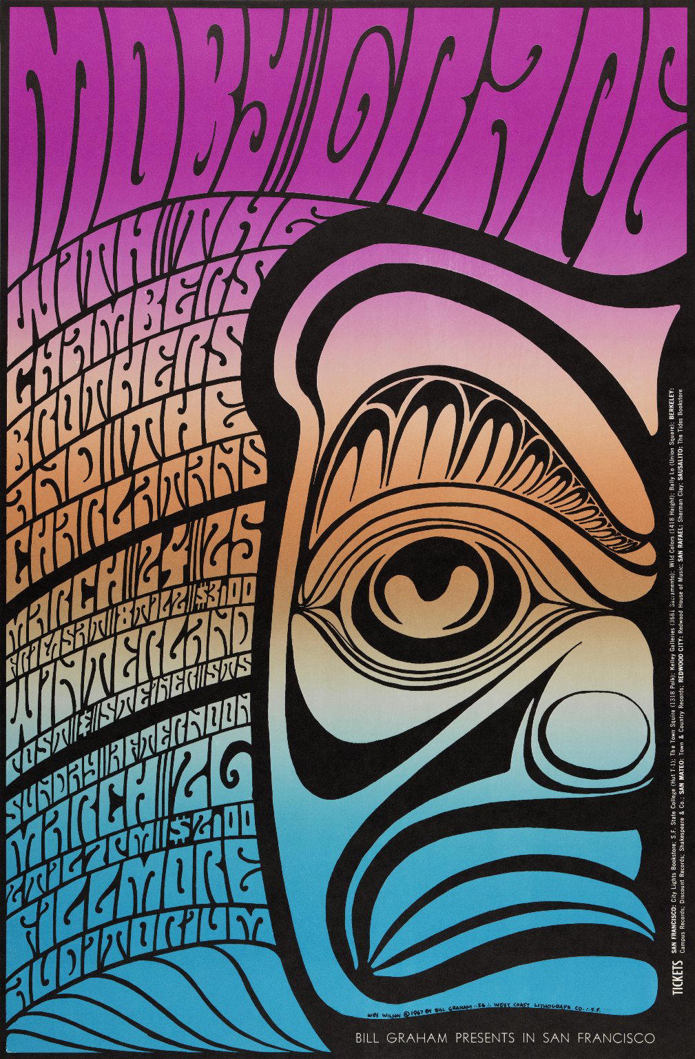 Wes Wilson (American, 1937–2020). [Untitled] (Moby Grape/Chambers Brothers...), 1967. Offset lithograph on paper, sheet: 21 x 13 3/4 in. (53.3 x 34.9 cm). Brooklyn Museum, Designated Purchase Fund, 73.39.58. ©Bill Graham Archives, LLC, www.Wolfgangsvault.com. (Photo: Brooklyn Museum)