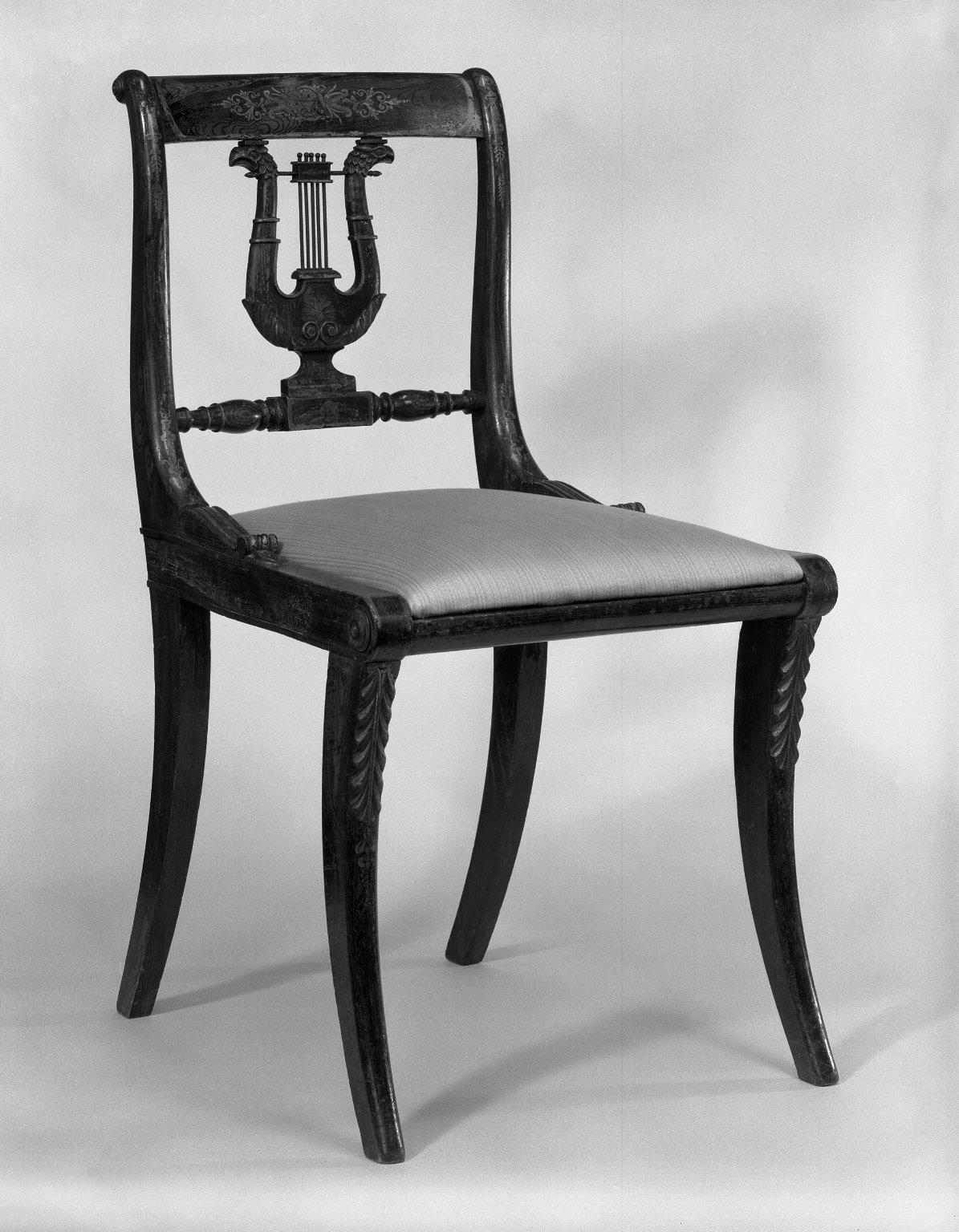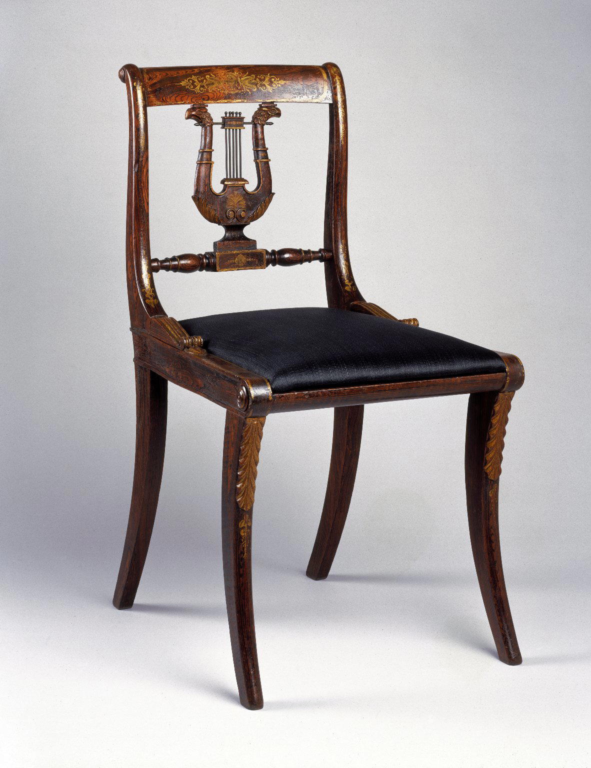 Charles-Honoré Lannuier (American, born France, 1779–1819). Side Chair, 1815–1819. Mahogany, gilded gesso, brass, maple, 32 3/4 x 17 3/4 in. (83.2 x 45.1 cm). Brooklyn Museum, Purchased with funds given by Eric M. Wunsch and the H. Randolph Lever Fund, 73.48.1. (Photo: Brooklyn Museum)