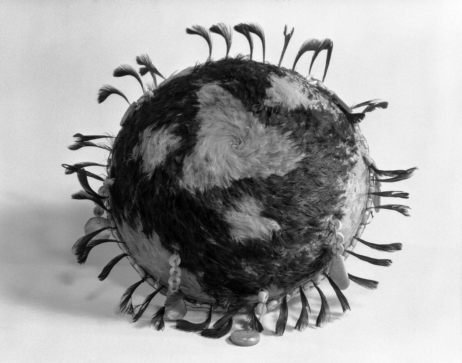 Pomo. A "Jewel" or Gift Basket, late 19th century. Fiber, feathers, shell, 5 11/16 × 5 11/16 in. (14.5 × 14.5 cm). Brooklyn Museum, By exchange, 73.65. (Photo: Brooklyn Museum)