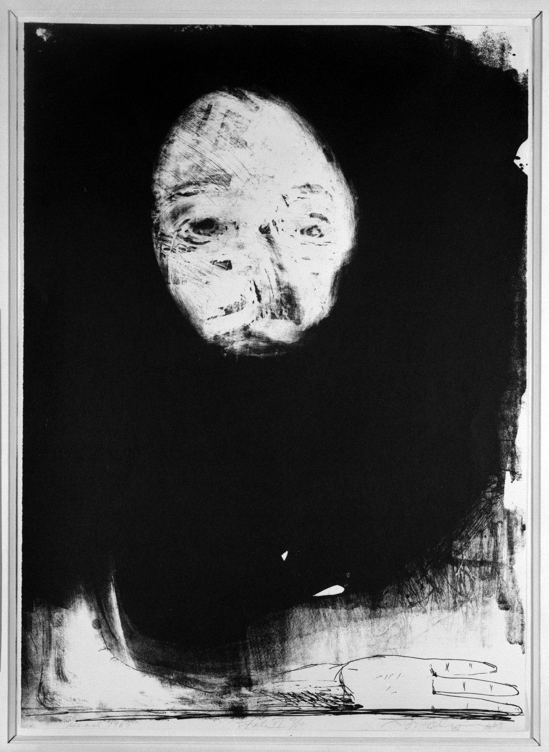 Nathan Oliveira (American, 1928 – 2010). Head, 1969. Lithograph on paper, 28 1/8 x 20 1/8 in. (71.4 x 51.1 cm). Brooklyn Museum, Gift of Mr. and Mrs. Samuel Dorsky, 74.178.56. © Nathan Oliveira. (Photo: Brooklyn Museum)