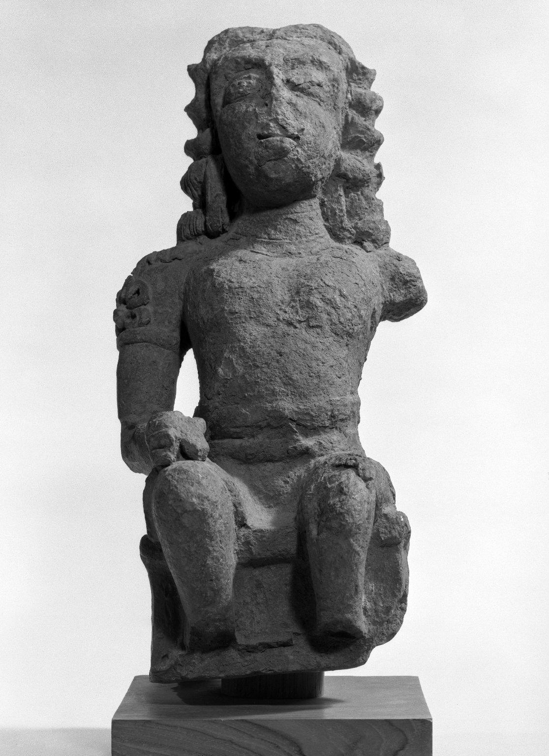 Seated Prince Male Figure, 5th–6th century C.E.. Red terracotta, 13 1/2 x 6 1/2 x 7 1/4 in. (34.3 x 16.5 x 18.4 cm). Brooklyn Museum, Gift of Mr. and Mrs. Fong Chow, 74.197.1. (Photo: Brooklyn Museum)