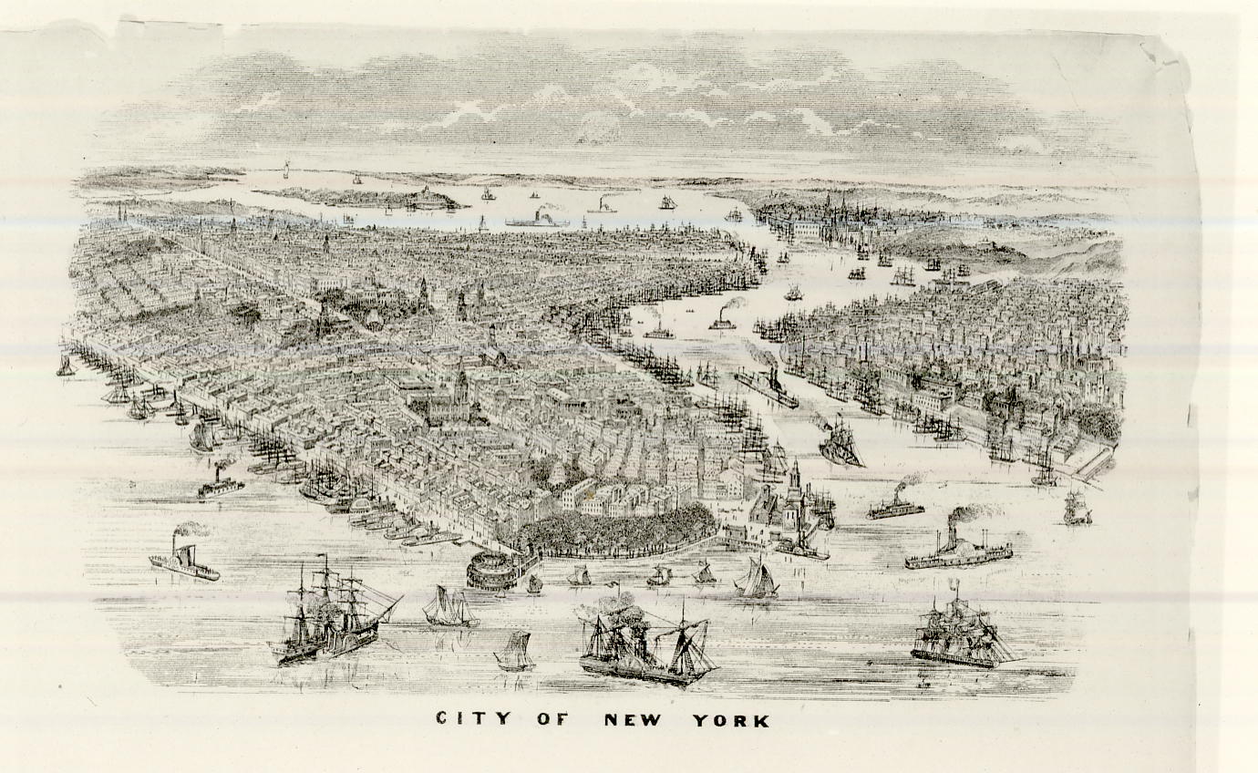 Unknown Artist. City of New York, Lithograph, hand painted with watercolor on paper, sheet: 8 1/4 x 17 in. (21 x 43.2 cm) image: 4 3/8 x 7 1/4 in. (11.1 x 18.4 cm). Brooklyn Museum, Gift of Michael Cohen, 75.141.3. (Photo: Brooklyn Museum)