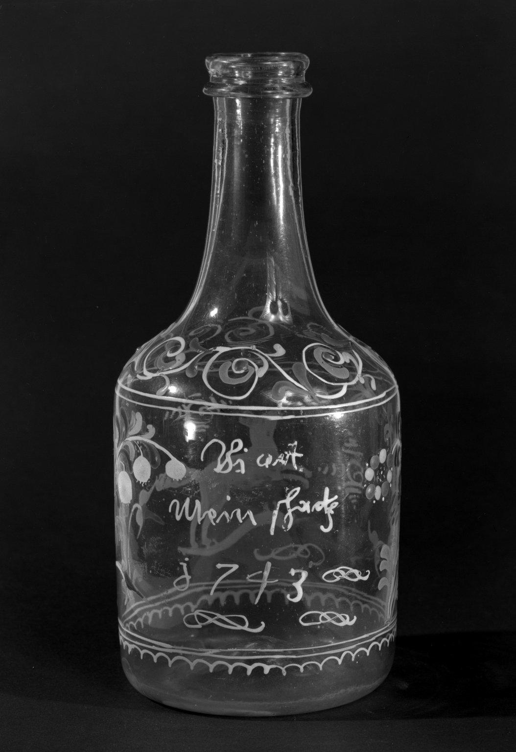 Bottle, 1743 (probably). Glass, 7 x 3 in. (17.8 x 7.6 cm). Brooklyn Museum, The C. Helme and Alice B. Strater Collection, Gift of C. Helme Strater, Jr., John B. Strater, and Margaret S. Robinson, 76.34.17. (Photo: Brooklyn Museum)