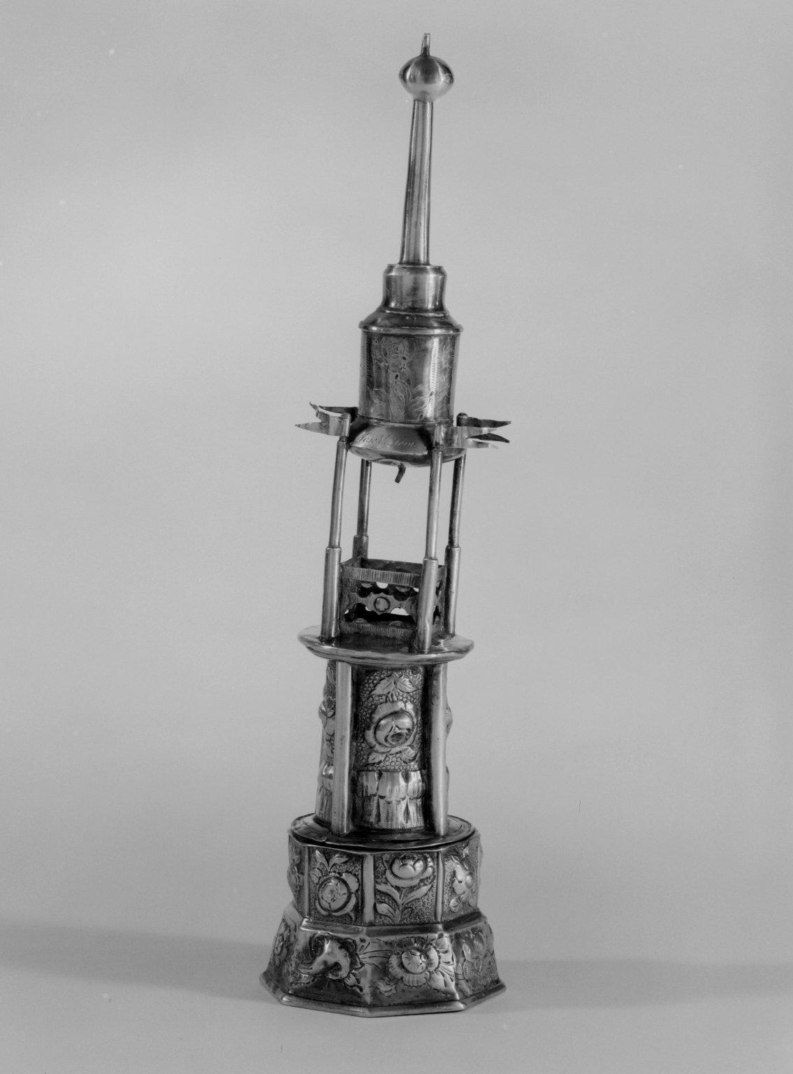 Unknown Maker. Spice Box, early 20th century with some earlier elements. Silver, 11 1/2 x 2 3/4 x 2 3/4 in. (29.2 x 7 x 7 cm). Brooklyn Museum, Gift of Mr. and Mrs. Herbert Perlmann, 50.68. (Photo: Brooklyn Museum)