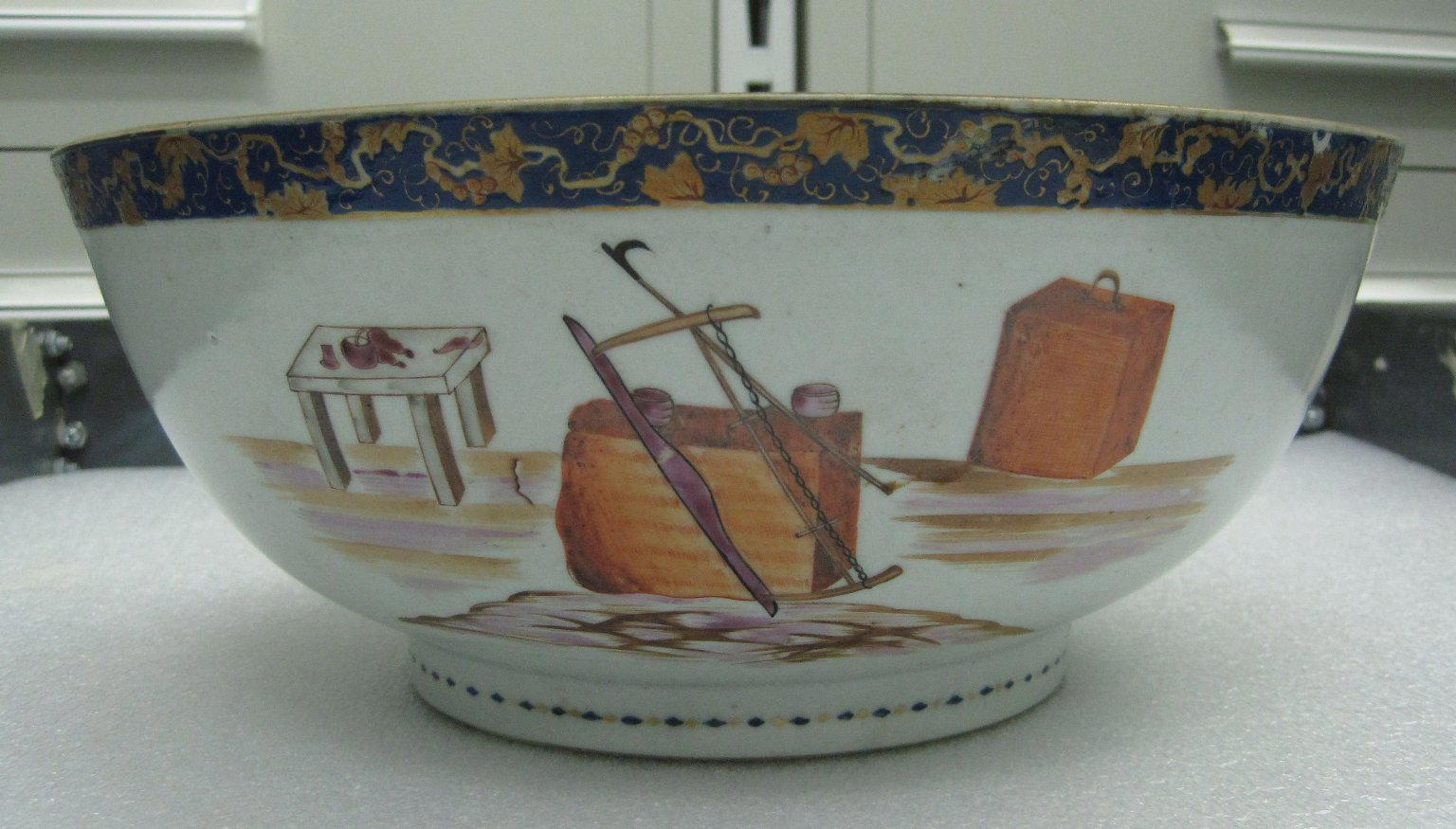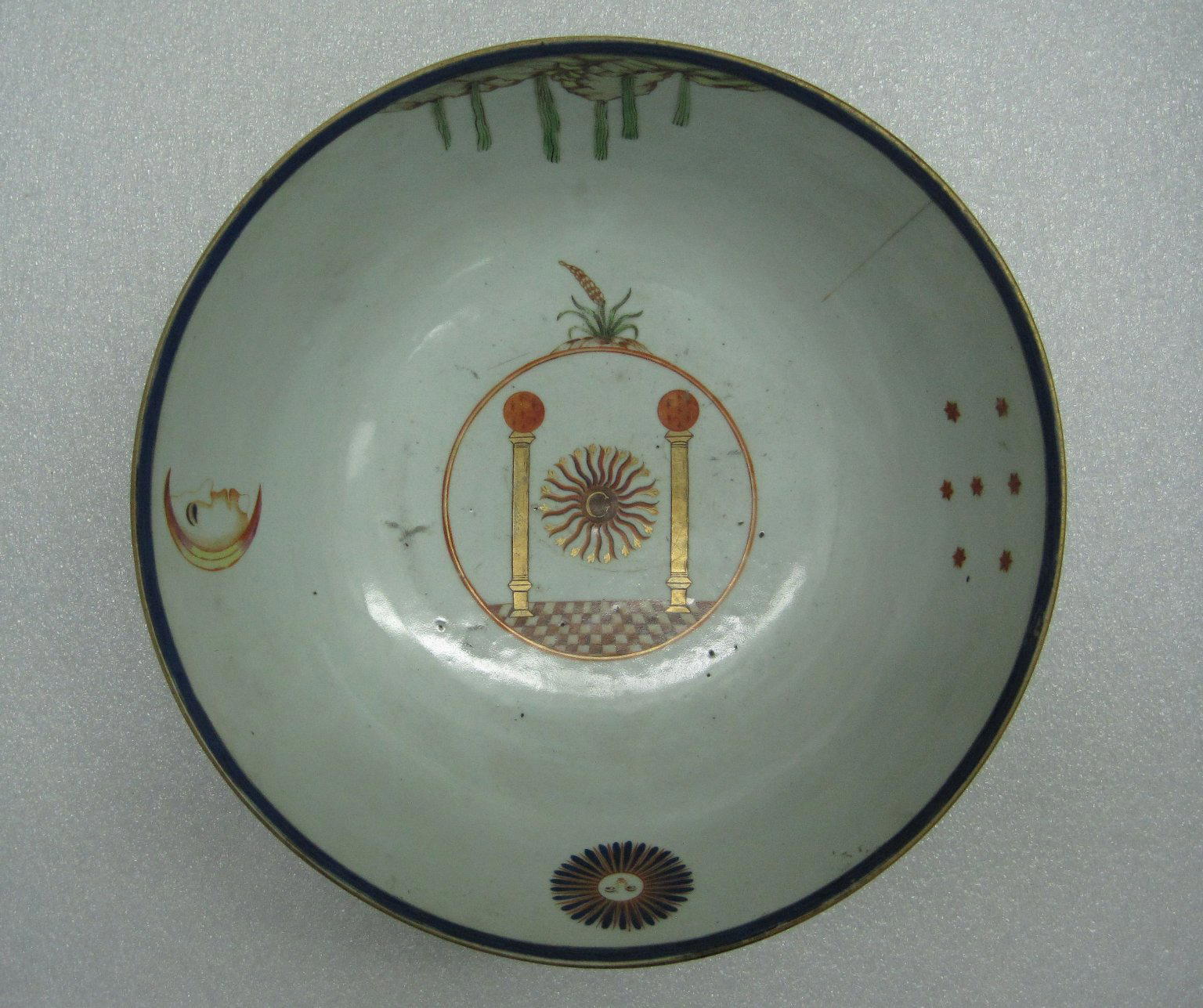 Lowestoft Bowl with Masonic Decoration, 1790–1810. Ceramic, 4 1/2 x 11 1/4 in. (11.4 x 28.6 cm). Brooklyn Museum, Gift of Kate M. Fowler, 17.11. (Photo: Brooklyn Museum)