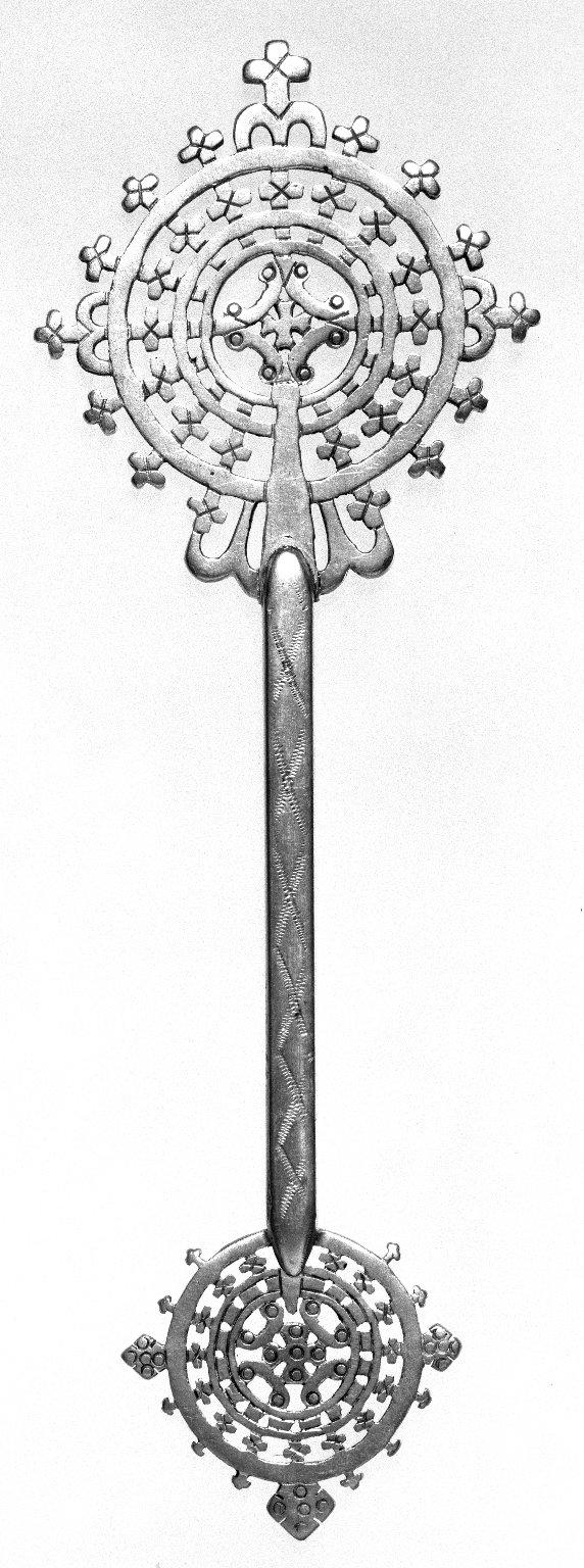 Amhara. Hand Cross (mäsqäl), 19th or 20th century. Silver, 8 1/4 x 2 3/4 in. (21.0 x 7.0 cm). Brooklyn Museum, Gift of George V. Corinaldi Jr., 79.72.30. (Photo: Brooklyn Museum)