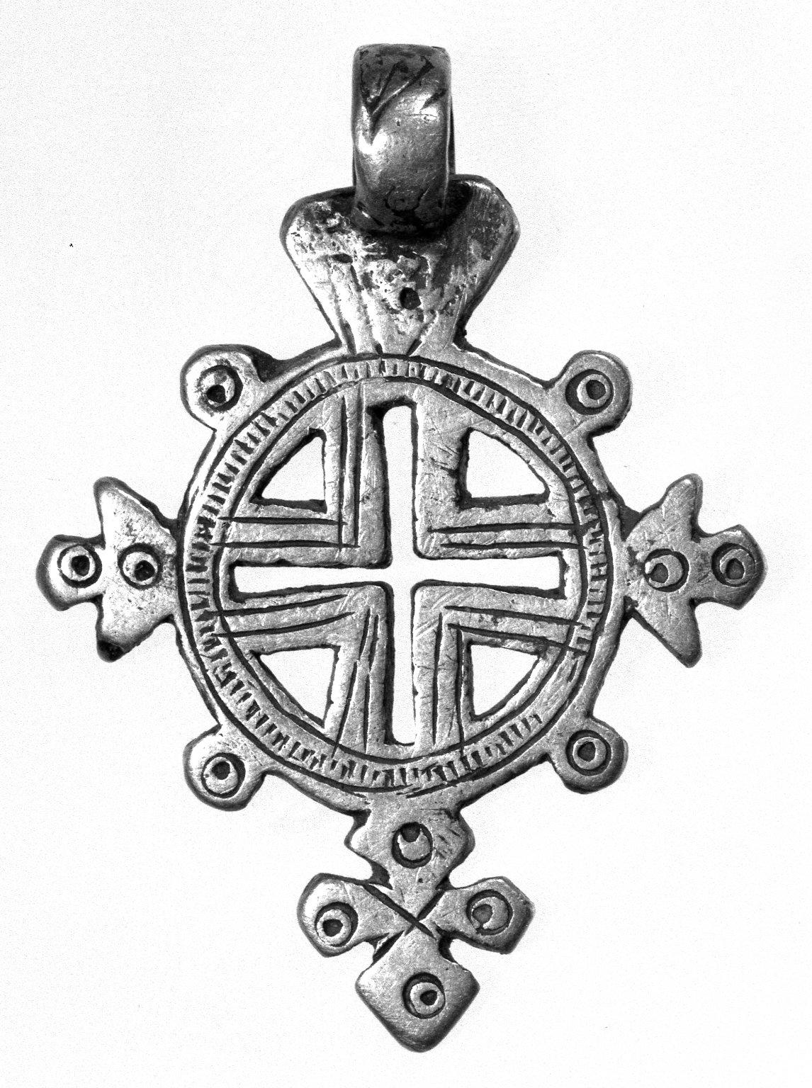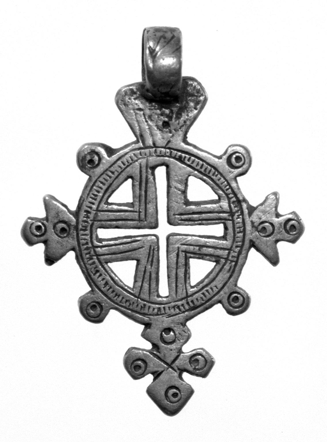Amhara. Pendant Cross, 19th or 20th century. Silver, 1 3/4 x 1 1/4 in. (4.6 x 3.3 cm). Brooklyn Museum, Gift of George V. Corinaldi Jr., 79.72.33. (Photo: Brooklyn Museum)
