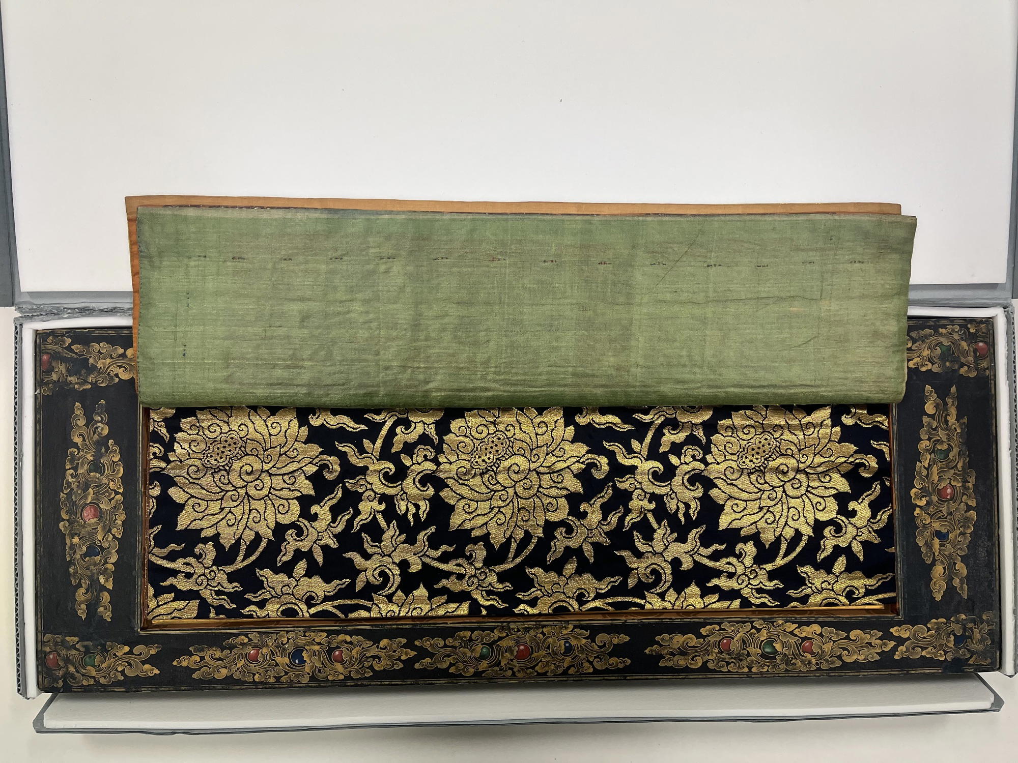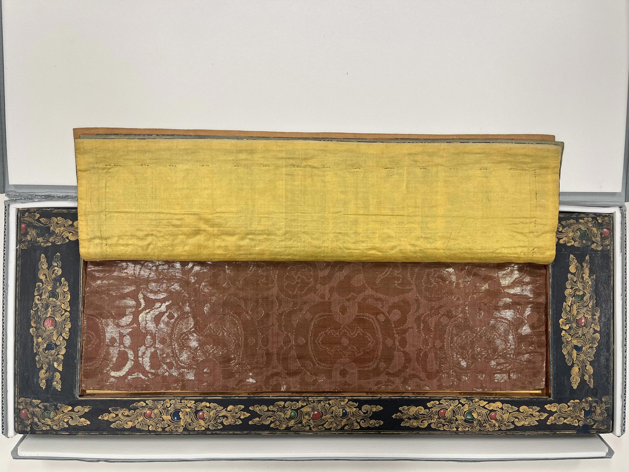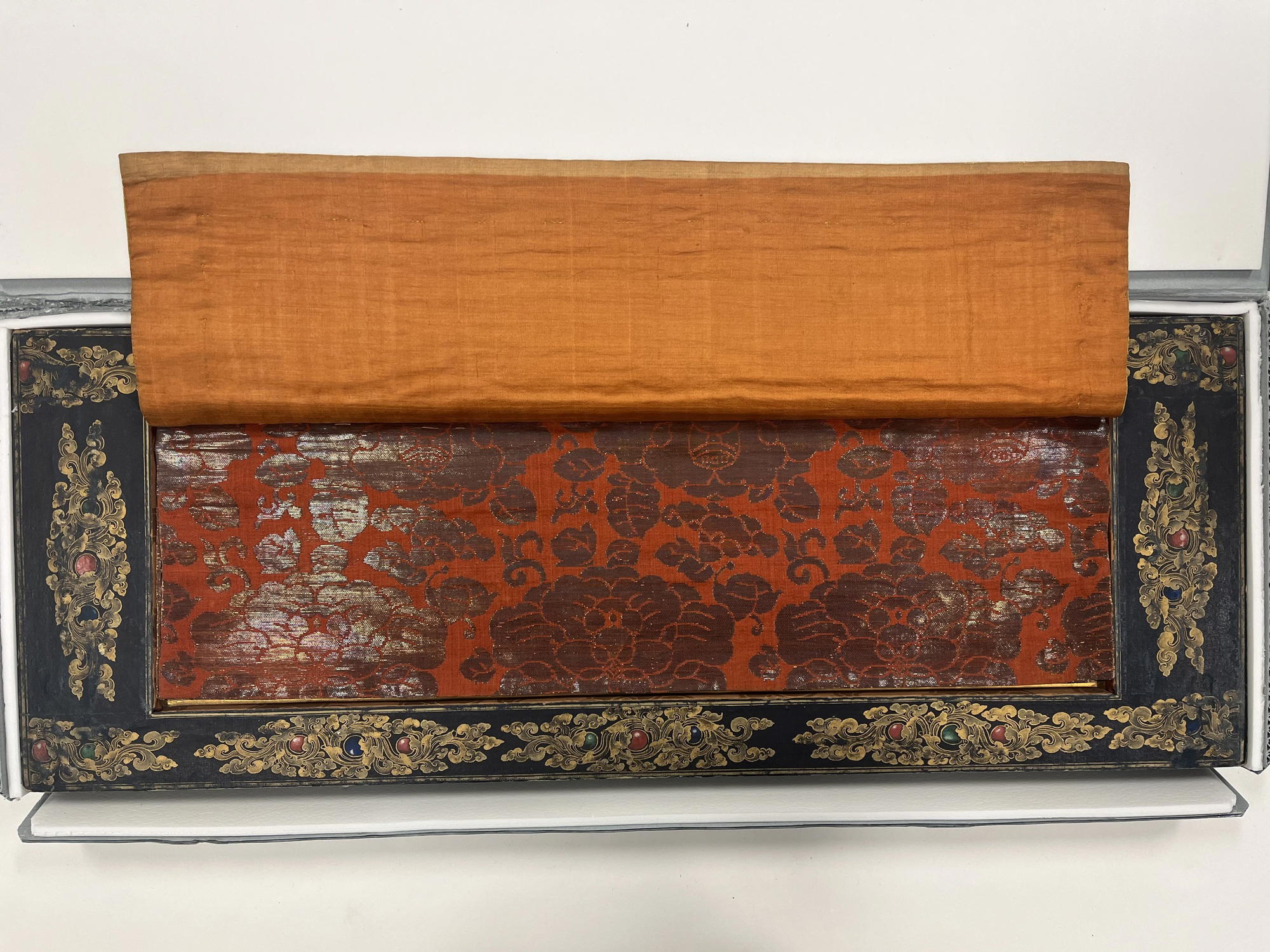 Book Cover, One of a Pair, ca. 18th–19th century. Opaque colors and gold on paper applied to wood, 9 1/4 x 24 7/8 in. (23.5 x 63.2 cm). Brooklyn Museum, Gift of Mr. and Mrs. Myron s. Falk, Jr., 79.125.2. (Photo: Brooklyn Museum)