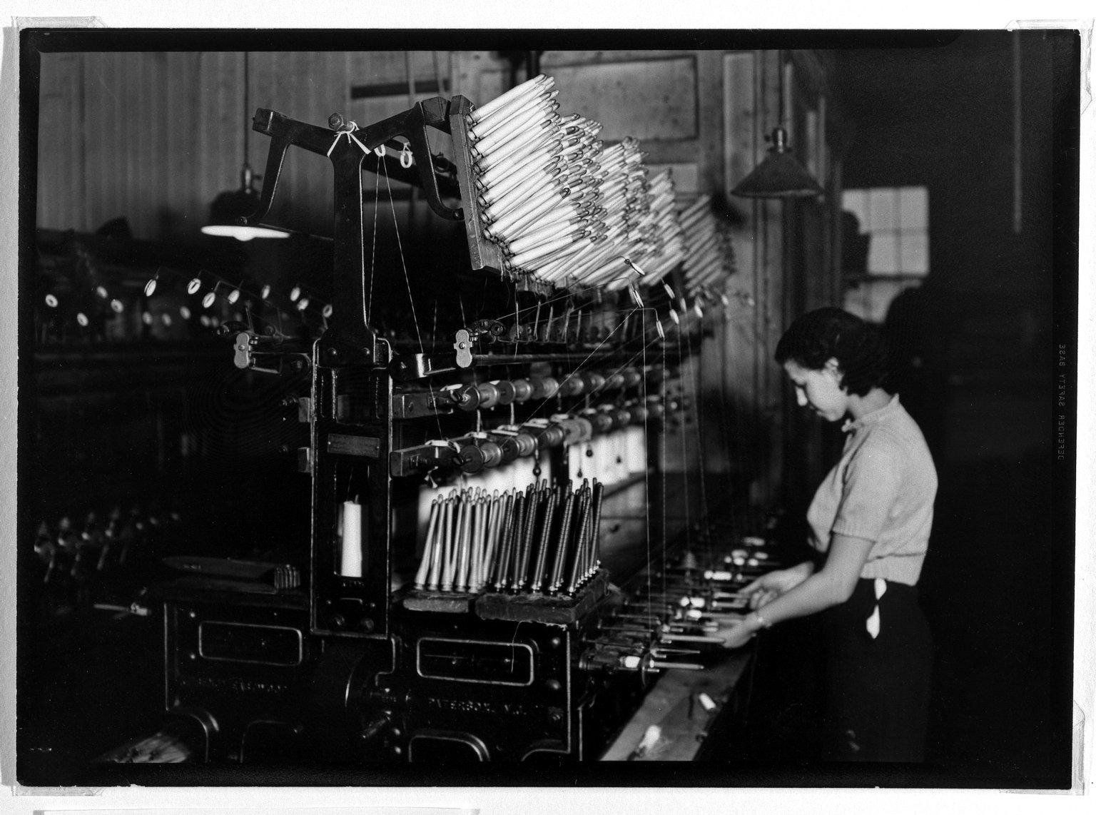 Lewis Wickes Hine (American, 1874–1940). [Untitled] (Woman at Threading Machine), 1936–1937. Gelatin silver print, 5 x 7 in. (12.7 x 17.8 cm). Brooklyn Museum, Gift of The National Archives, 79.143.75. (Photo: Brooklyn Museum)