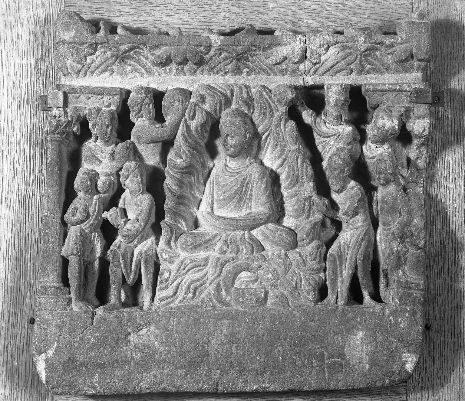 Relief Depicting the Buddha Performing the Miracle at Uruvilva, late 2nd–3rd century. Slate, 12 3/8 x 12 5/8 in. (31.5 x 32 cm). Brooklyn Museum, 19.56. (Photo: Brooklyn Museum)
