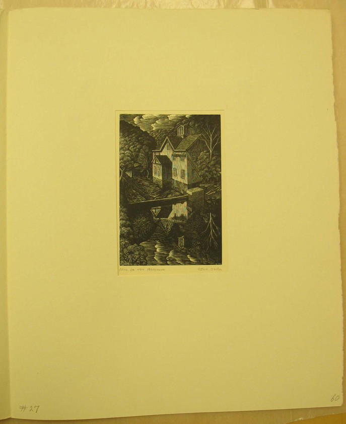 Inscribed in graphite on inside recto page of folder at lower left: "#27". Title, "Mill on the Aspetuck," written below plate, left corner