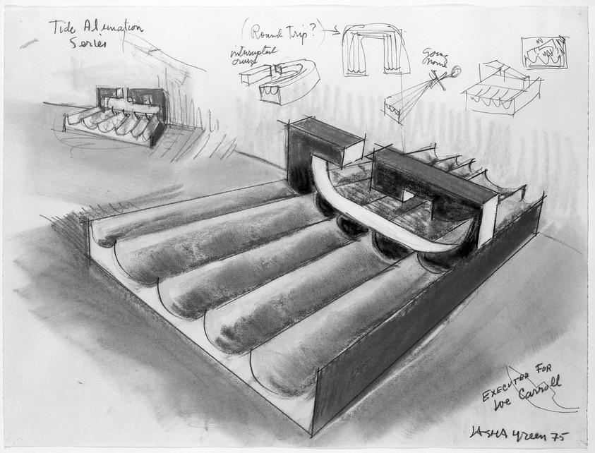 Jasha Green (American, 1923–2006). Study for Tide Alienation Series, 1975. Pencil, crayon, and wash (and possibly pastel) on paper, sheet: 19 × 25 1/8 in. (48.3 × 63.8 cm) frame: 21 3/4 × 27 3/4 × 1 1/4 in. (55.2 × 70.5 × 3.2 cm). Brooklyn Museum, Gift of the Carroll Family Collection, 80.78.6. (Photo: Brooklyn Museum)