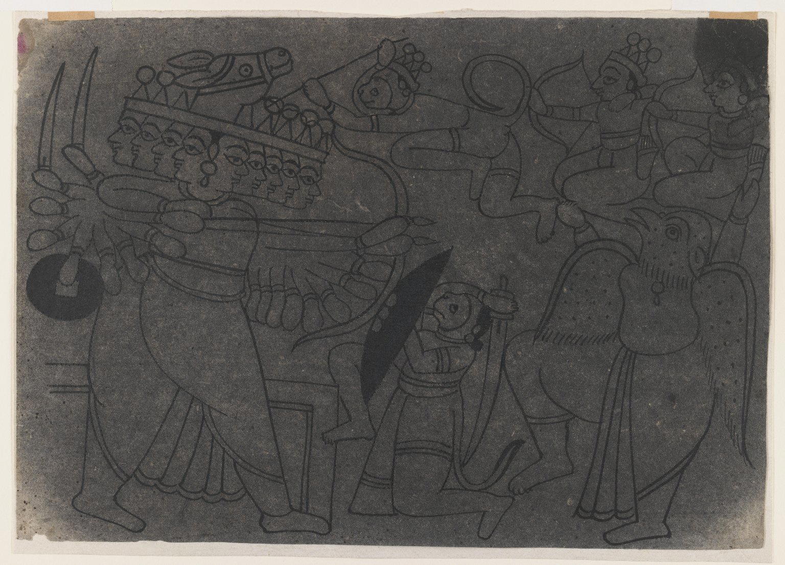 Indian. Ramayana Scene, ca. 1850. Ink on paper, pounced for transfer, sheet: 8 3/8 x 12 in. (21.3 x 30.5 cm). Brooklyn Museum, Gift of Marilyn W. Grounds, 80.261.25. (Photo: Brooklyn Museum)