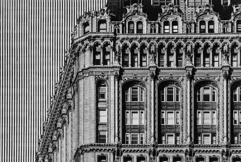 Harry Wilks (American, born 1942). World Trade Center Backdrop, 1977. Gelatin silver print, Sheet: 8 x 9 7/8 in. (20.3 x 25.1 cm). Brooklyn Museum, Gift of Matilda and Phillip Zinn, 80.305.1. © Harry Wilks. (Photo: Courtesy of the artist)