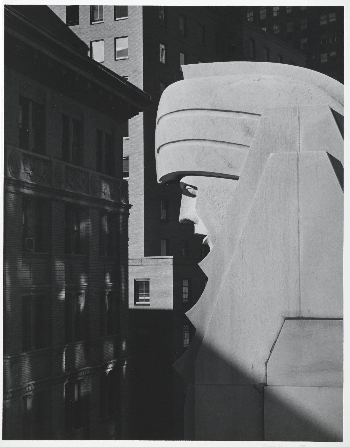 David Anderson (American, born 1943). Head, 20 Exchange Place, New York City, 1981. print, image/sheet: 13 1/4 x 10 3/8 in. (33.7 x 26.4 cm) mat: 20 x 15 7/8 in. (50.8 x 40.3 cm). Brooklyn Museum, Gift of the artist, 81.136. © David Anderson. (Photo: Brooklyn Museum)