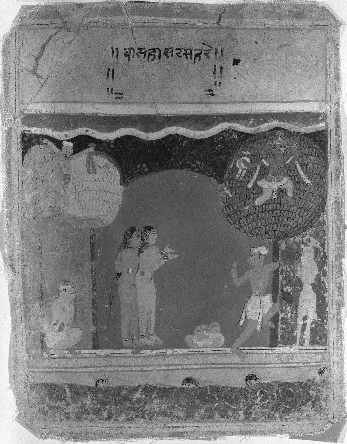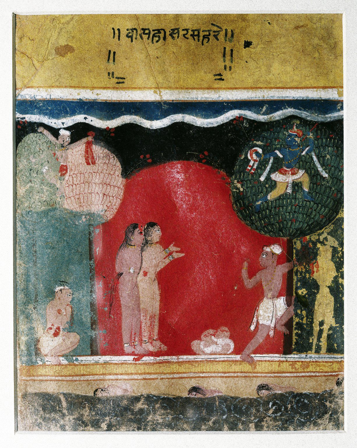 Indian. Krishna Steals the Gopis' Clothes, Page from a Dated Rasikapriya Series, 1634. Opaque watercolors on paper, sheet: 7 3/4 x 6 1/8 in. (19.7 x 15.6 cm) Image: 7 1/16 x 5 1/2 in. (17.9 x 14.0 cm). Brooklyn Museum, Gift of Nancy Anderson in honor of Dr. Bertram H. Schaffner, 82.73.1. (Photo: Brooklyn Museum)