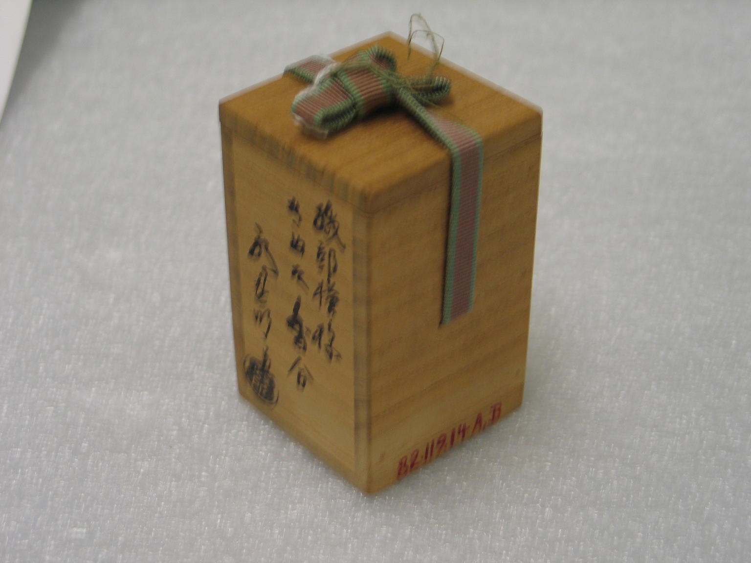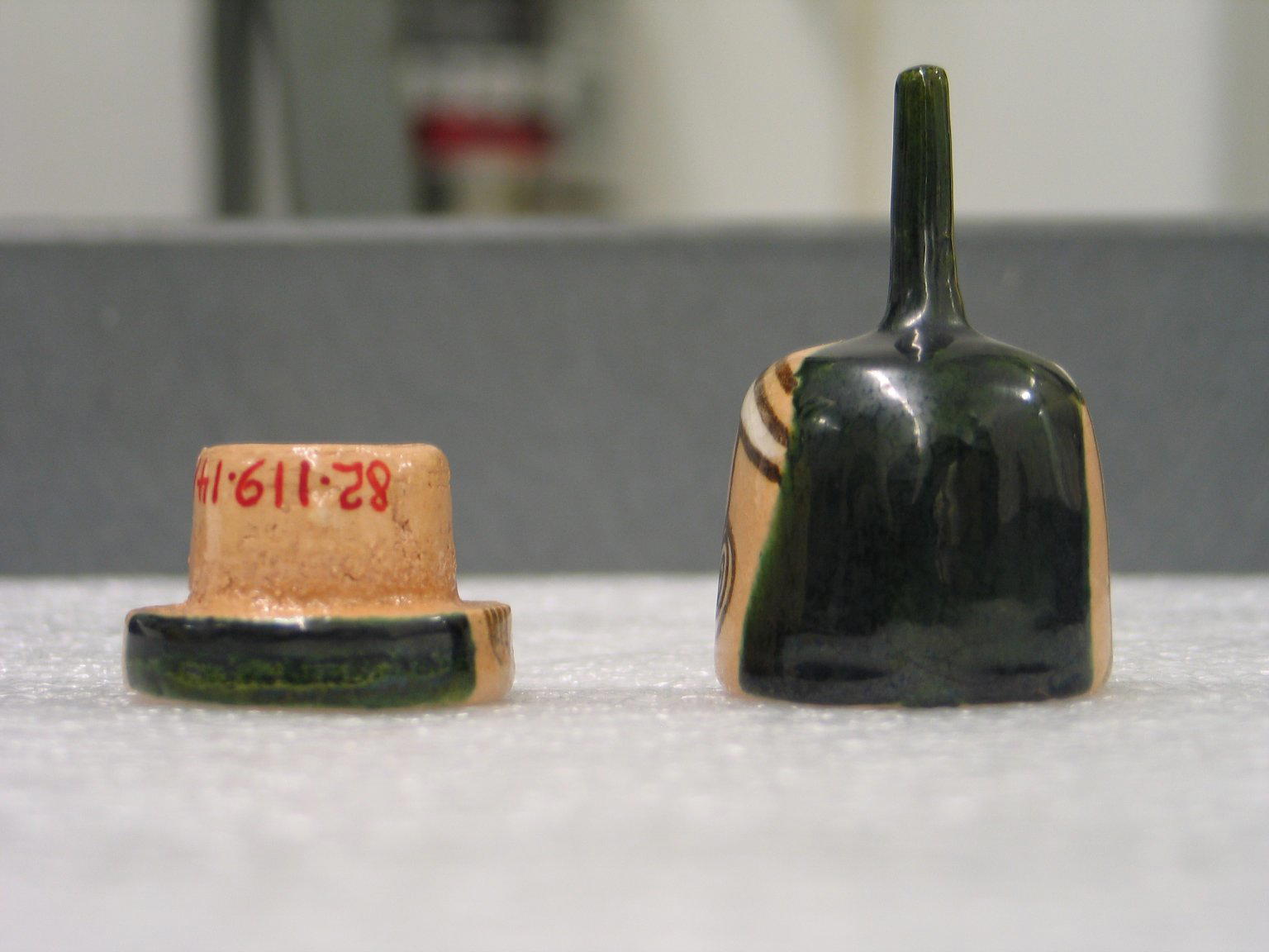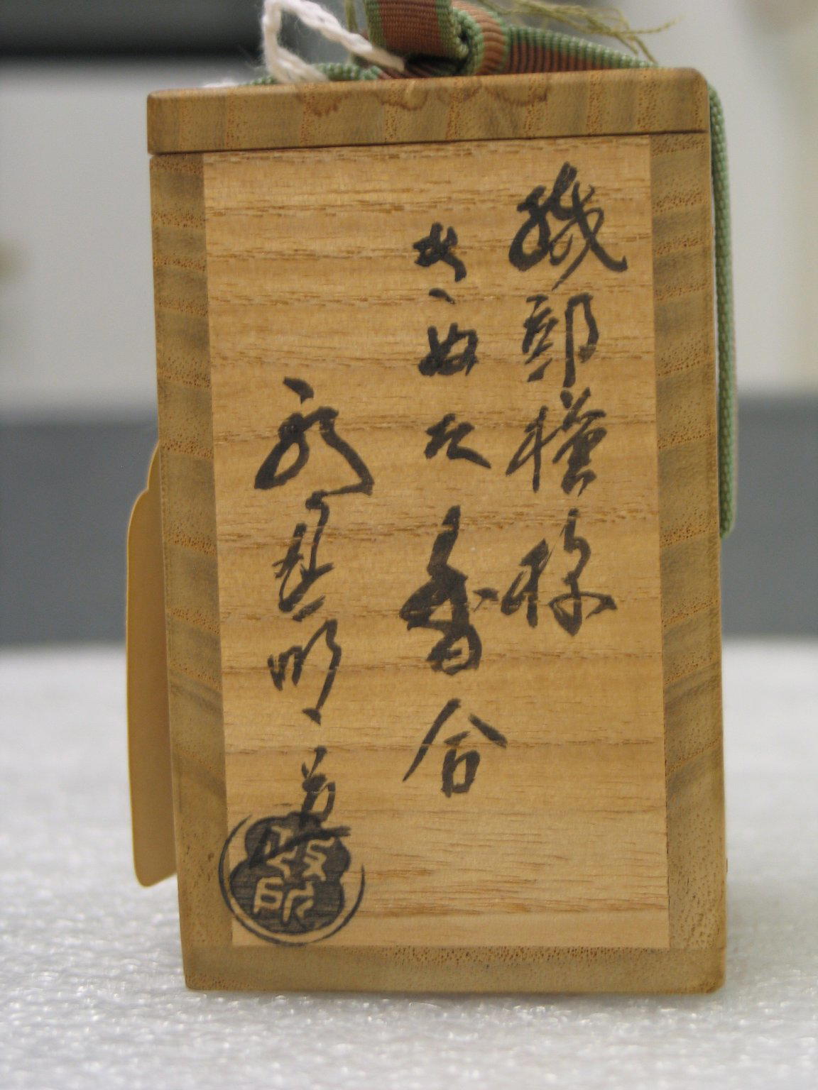 Goto Akimichi (Japanese). Incense Box, ca. 1965. Stoneware; Oribe ware, 2 7/8 x 1 3/8 in. (7.3 x 3.5 cm). Brooklyn Museum, Gift of Martin Greenfield, 82.119.14. (Photo: Brooklyn Museum)