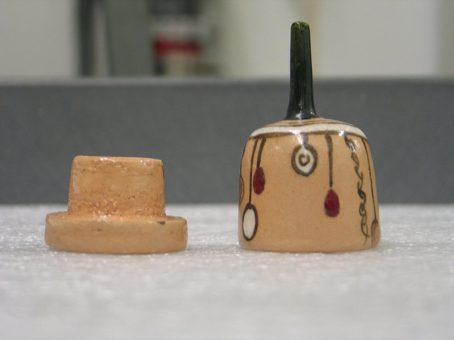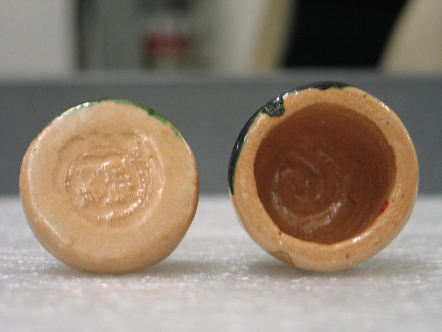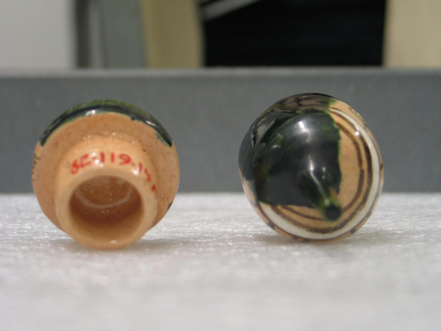 Goto Akimichi (Japanese). Incense Box, ca. 1965. Stoneware; Oribe ware, 2 7/8 x 1 3/8 in. (7.3 x 3.5 cm). Brooklyn Museum, Gift of Martin Greenfield, 82.119.14. (Photo: Brooklyn Museum)