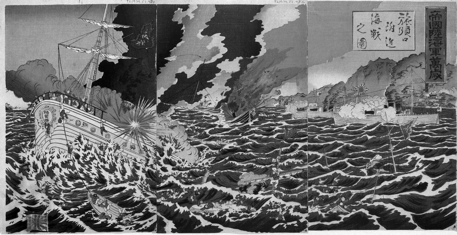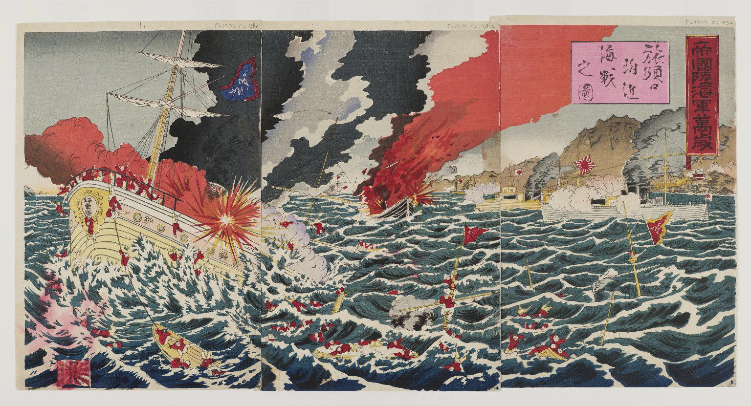 Triptych: Naval Battle, 1894. Color woodblock print, 14 1/2 x 9 3/4 in. (36.8 x 24.8 cm). Brooklyn Museum, Gift of Dr. Jack Hentel, 82.179.12. (Photo: Brooklyn Museum)