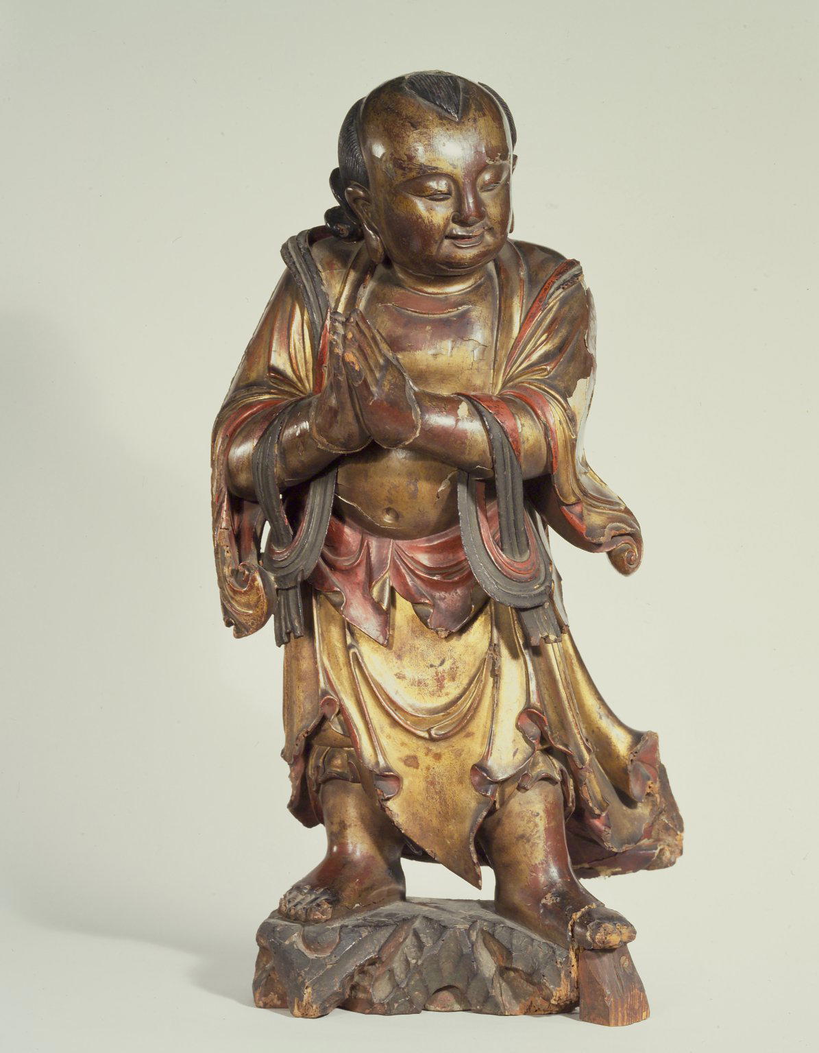 Altar Attendant, 1368–1644. Gilt and polychromed wood, 26 x 13 1/2 in. (66 x 34.3 cm). Brooklyn Museum, Gift of Dr. David Kinne, 83.238. (Photo: Brooklyn Museum)