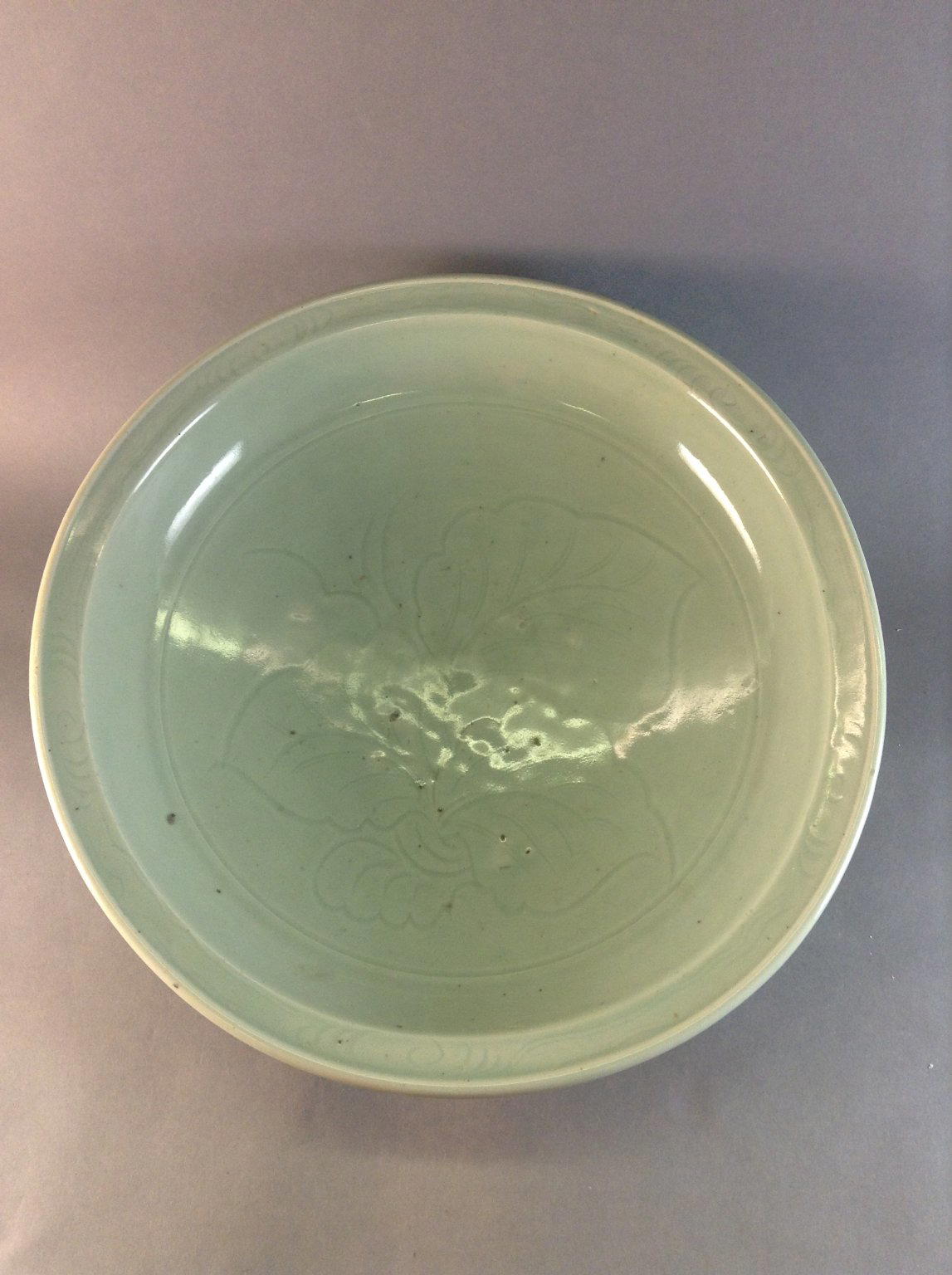Arita Celadon Charger, 17th century. Stoneware with celadon glaze; Bizen ware, 4 5/8 x 17 5/8 in. (11.7 x 44.8 cm). Brooklyn Museum, Gift of Carole Davenport, 84.143. (Photo: Brooklyn Museum)