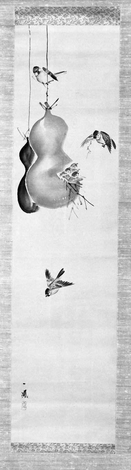 Mori Ippo (Japanese, 1798–1891). Sparrows and Gourds, 19th century. Hanging scroll painting; ink and light color on paper, 48 x 12 in. (121.9 x 30.5 cm). Brooklyn Museum, Gift of Dr. Kenneth Rosenbaum, 84.203.3. (Photo: Brooklyn Museum)