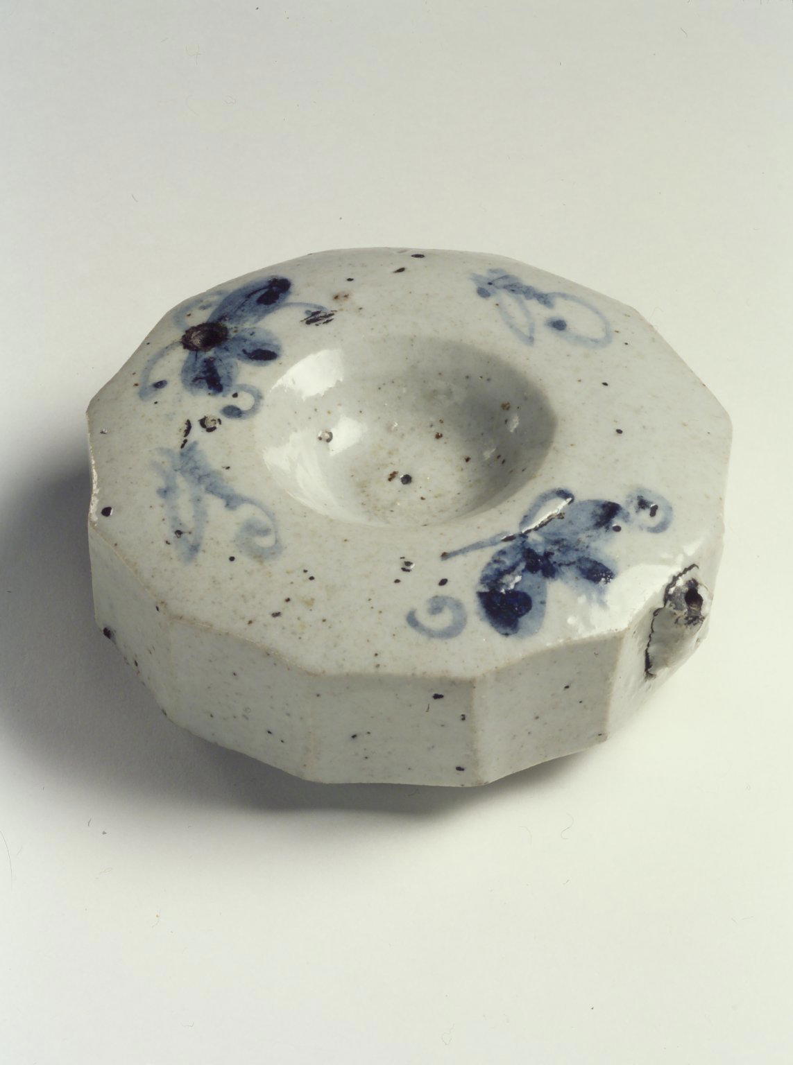 Water Dropper, 19th century. Porcelain with cobalt blue underglaze decoration, Height: 1 7/16 in. (3.7 cm) Diameter at mouth: 3 3/4 in. (9.6 cm) Diameter at base: 2 7/8 in. (7.3 cm). Brooklyn Museum, Gift of John M. Lyden, 84.262.31. (Photo: Brooklyn Museum)