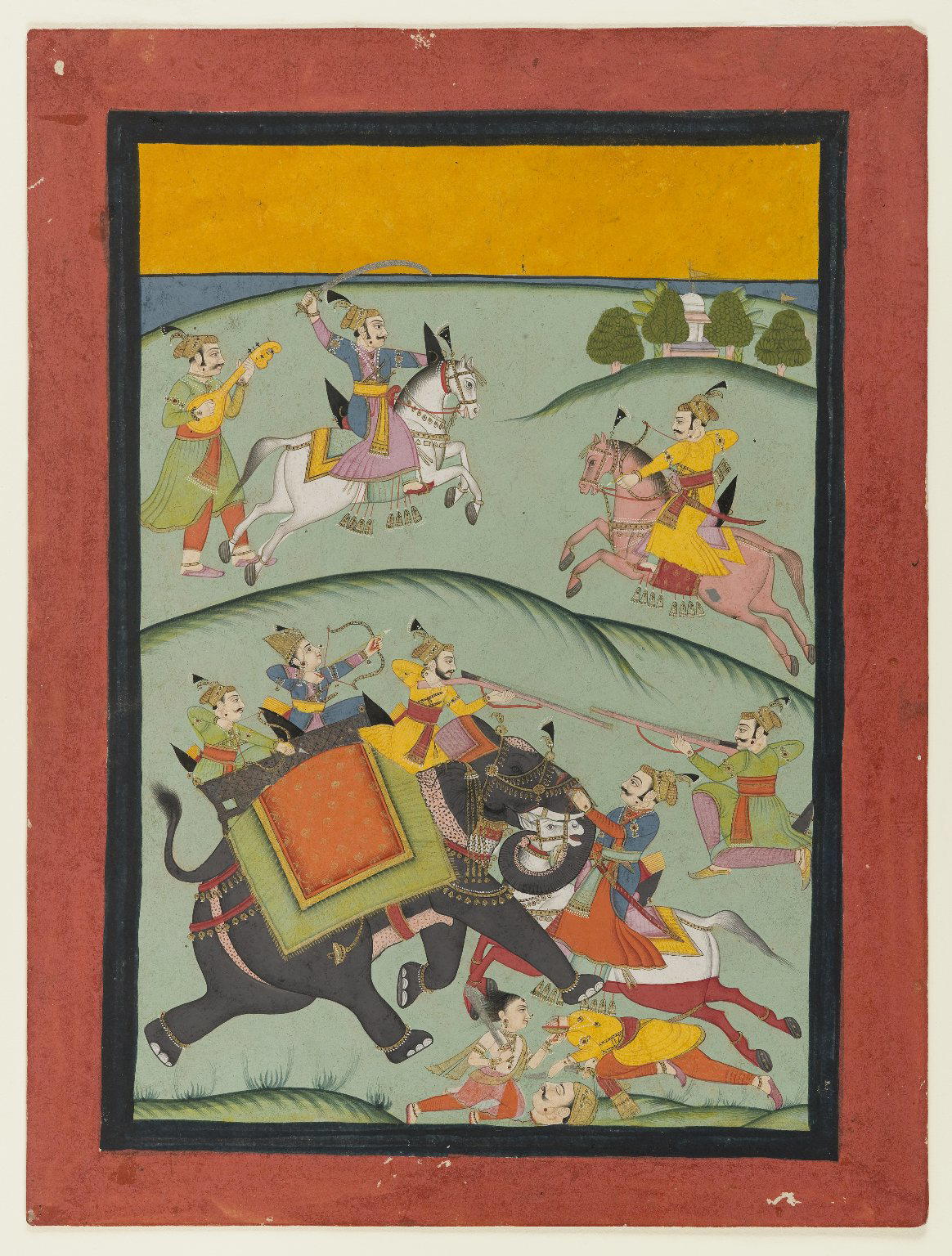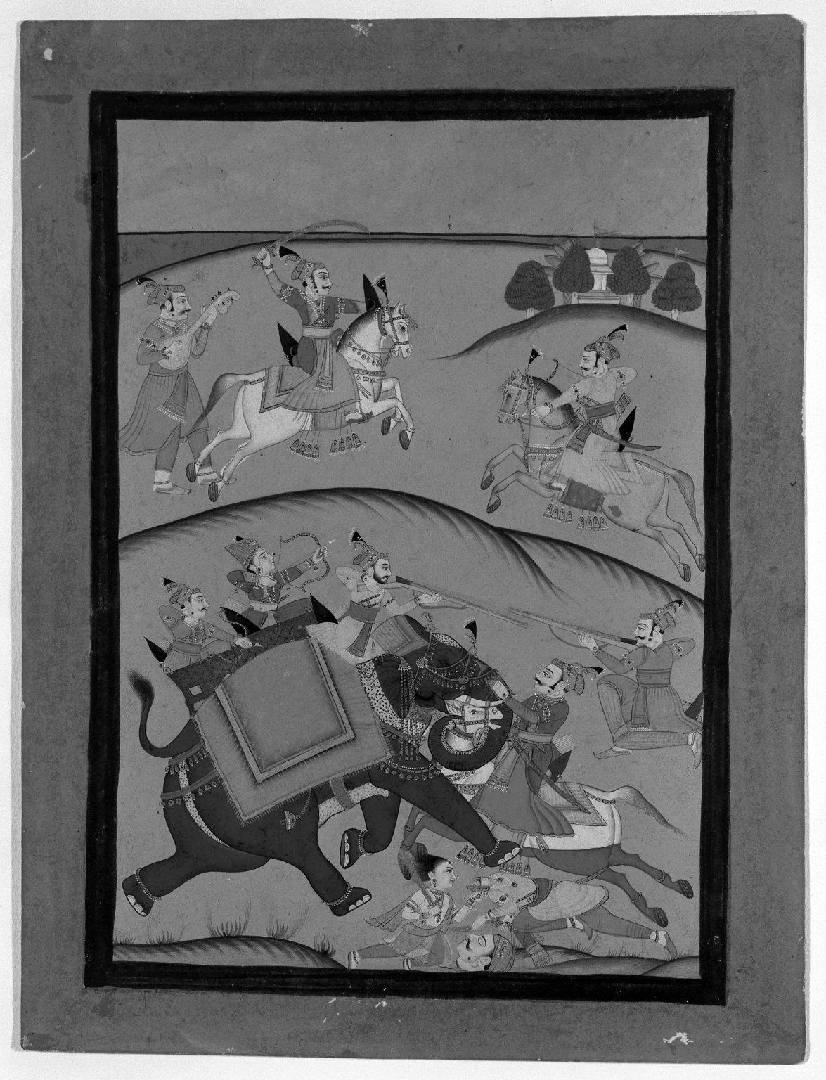 Indian. Nata Ragini, page from a dispersed Ragamala series, after 1800. Opaque watercolors and gold on paper, sheet: 12 1/4 x 9 1/4 in. (31.1 x 23.5 cm) Image: 10 x 6 7/8 in. (25.4 x 17.5 cm). Brooklyn Museum, Gift of Mr. and Mrs. Robert L. Poster, 85.220.3. (Photo: Brooklyn Museum)