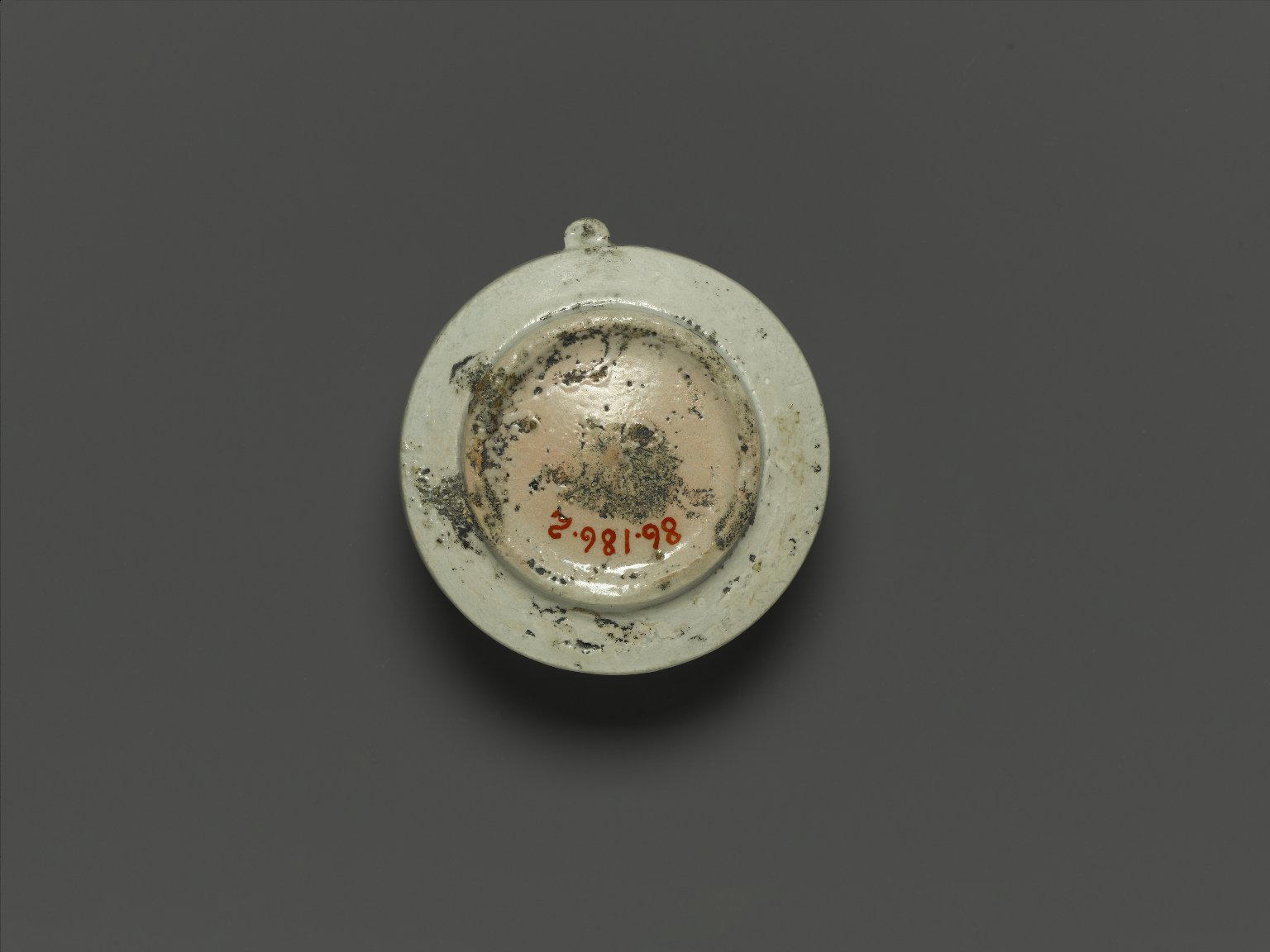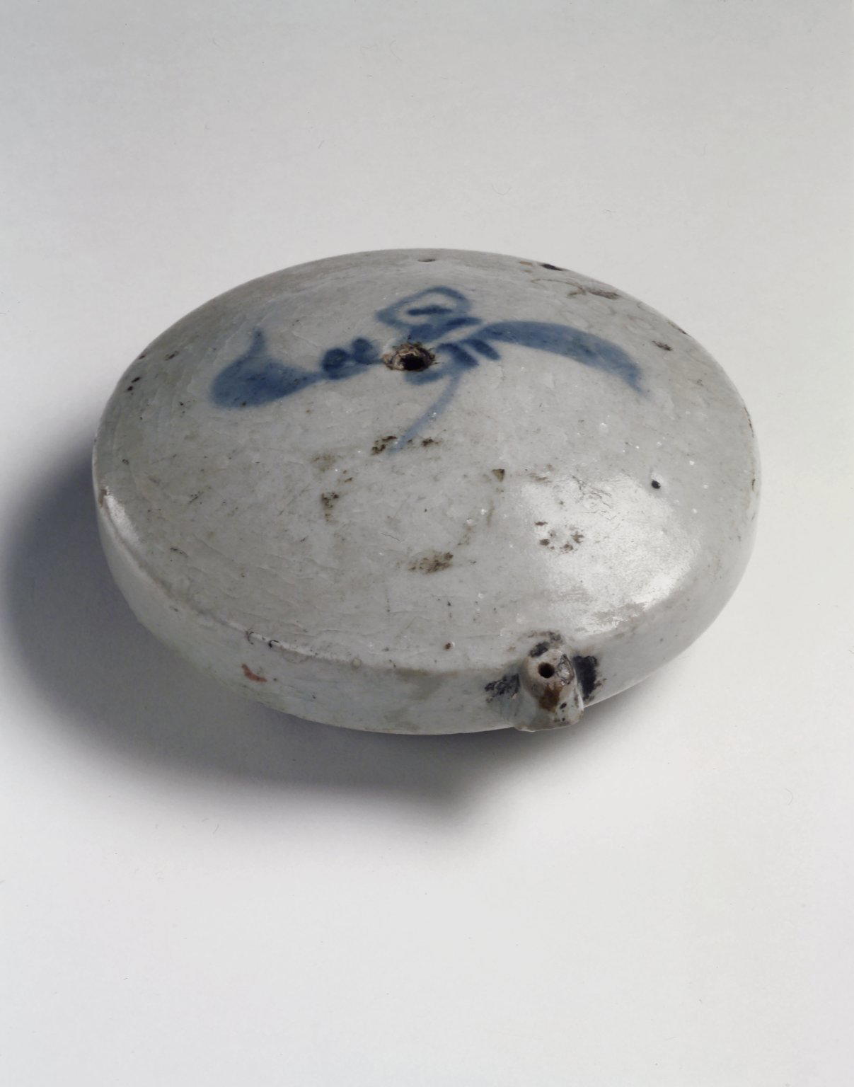 Water Dropper, 19th century. Porcelain with cobalt blue underglaze decoration, Height: 1 1/2 in. (3.8 cm) Diameter at mouth: 7/16 in. (1.1 cm) Diameter at base: 2 5/16 in. (5.8 cm) Diameter at widest point: 3 3/8 in. (8.6 cm). Brooklyn Museum, Gift of Austin Horowitz, 86.186.2. (Photo: Brooklyn Museum)