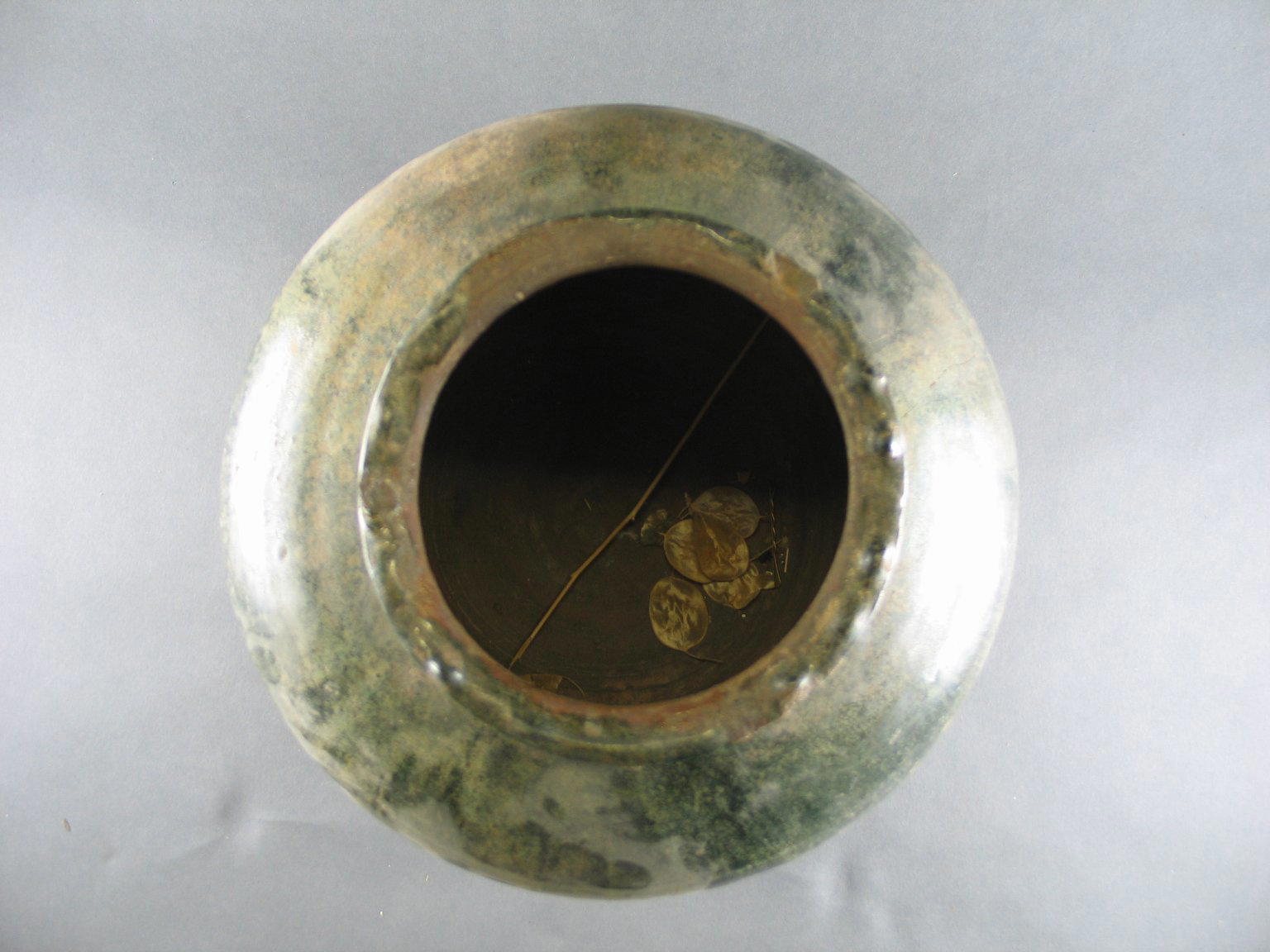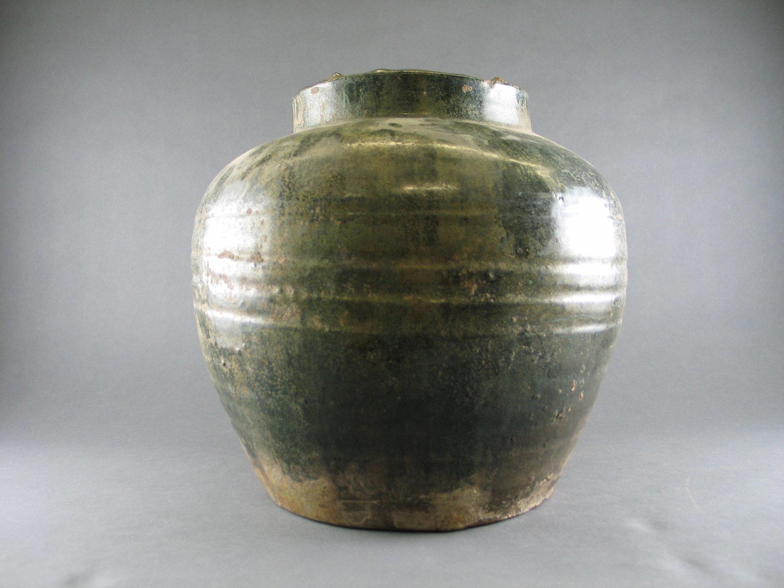 Jar with green glaze, 206 B.C.E.–221 C.E.. Stoneware with lead glaze, 10 1/2 x 11 in. (26.7 x 27.9 cm). Brooklyn Museum, Gift of Gary Smith, 86.189.1. (Photo: Brooklyn Museum)