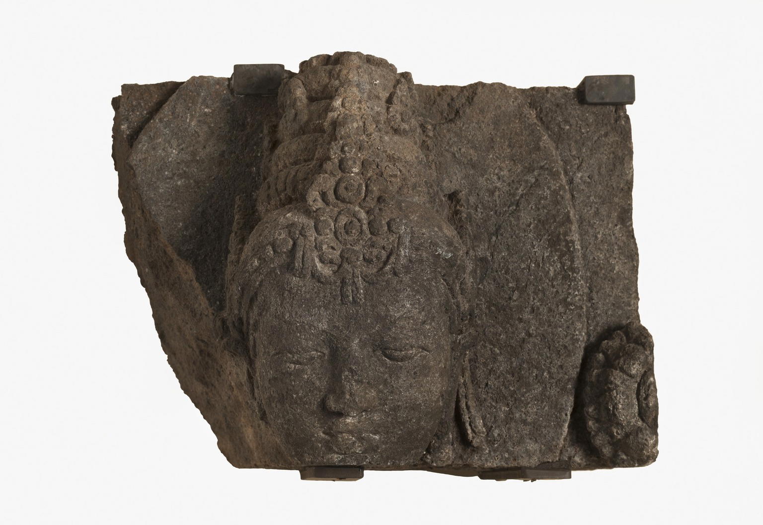 Head of a Deity, 9th–10th century. Volcanic stone, 9 1/2 × 13 × 11 1/2 in. (24.1 × 33 × 29.2 cm). Brooklyn Museum, Gift of Georgia and Michael de Havenon, 87.188.10. (Photo: Brooklyn Museum)