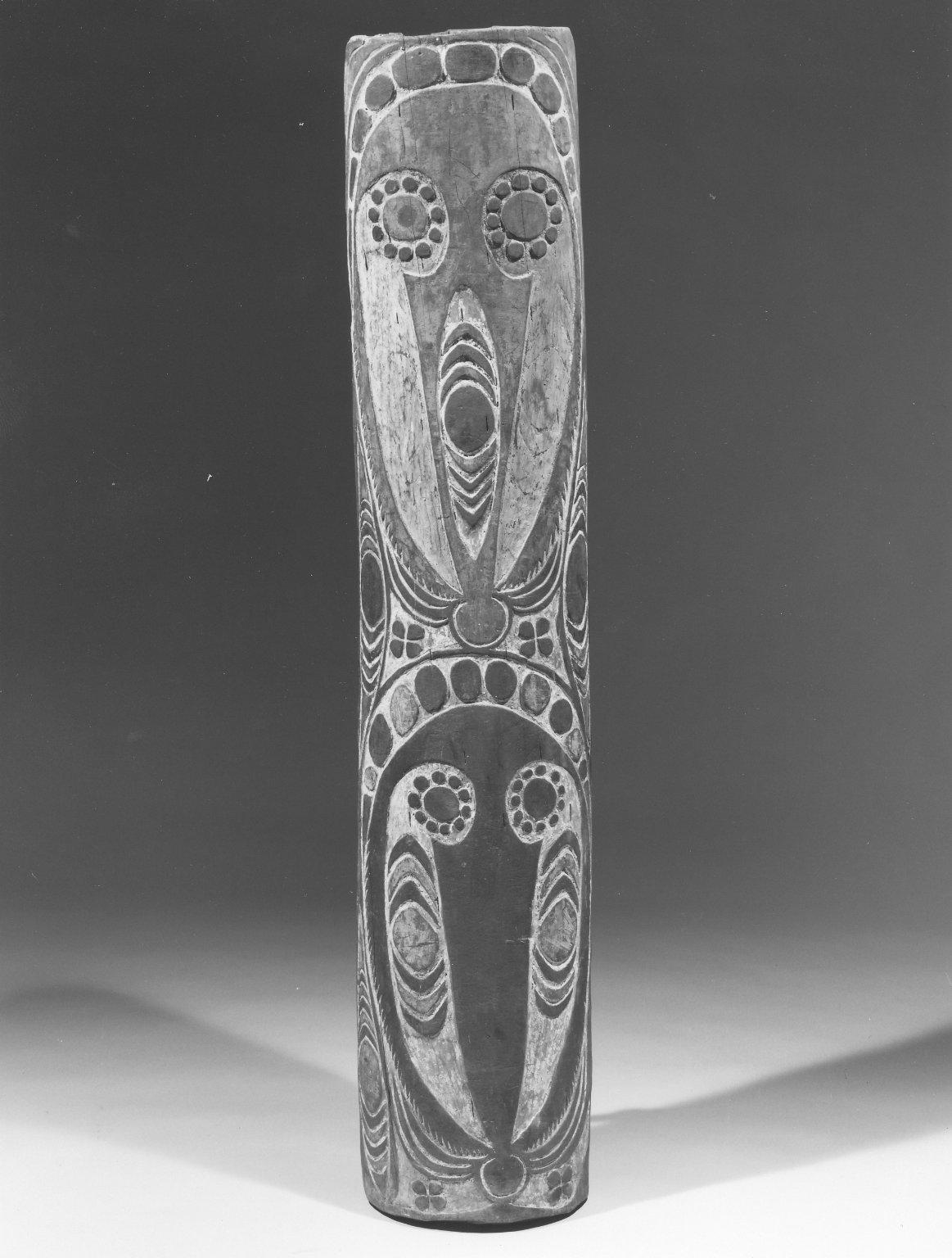 Shield, Wood, pigment, raffia, 54 1/2 x 10 1/2 in. (138.4 x 26.7 cm). Brooklyn Museum, Gift of Marcia and John Friede and Mrs. Melville W. Hall, 87.218.66. (Photo: Brooklyn Museum)