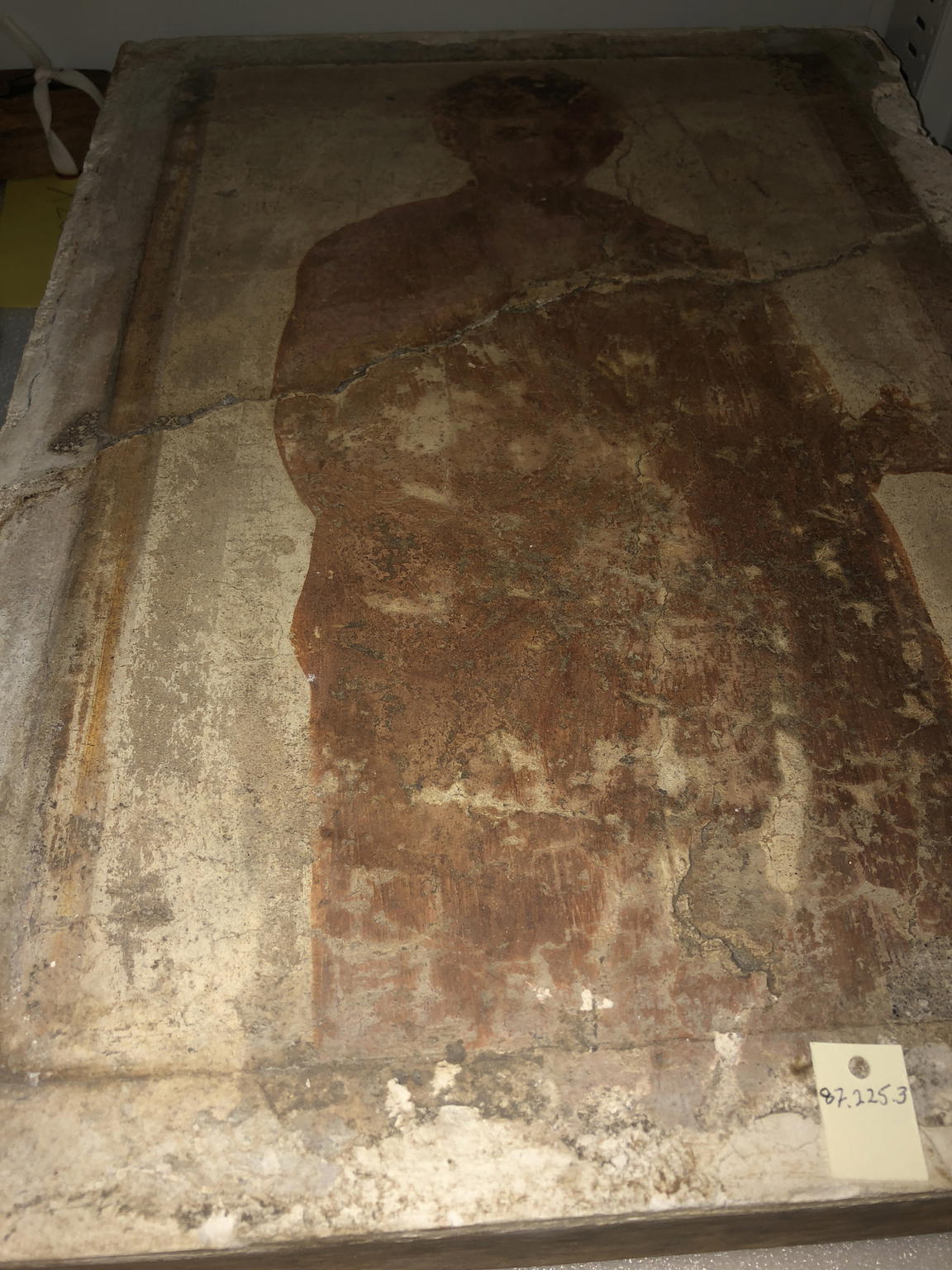 Roman. Fresco of a Man in a Toga, 200 C.E.. Plaster, pigment, 19 5/16 × 14 5/8 × 2 3/4 in. (49 × 37.2 × 7 cm). Brooklyn Museum, Gift of Mr. and Mrs. Jonathan Kagan, 87.225.3.