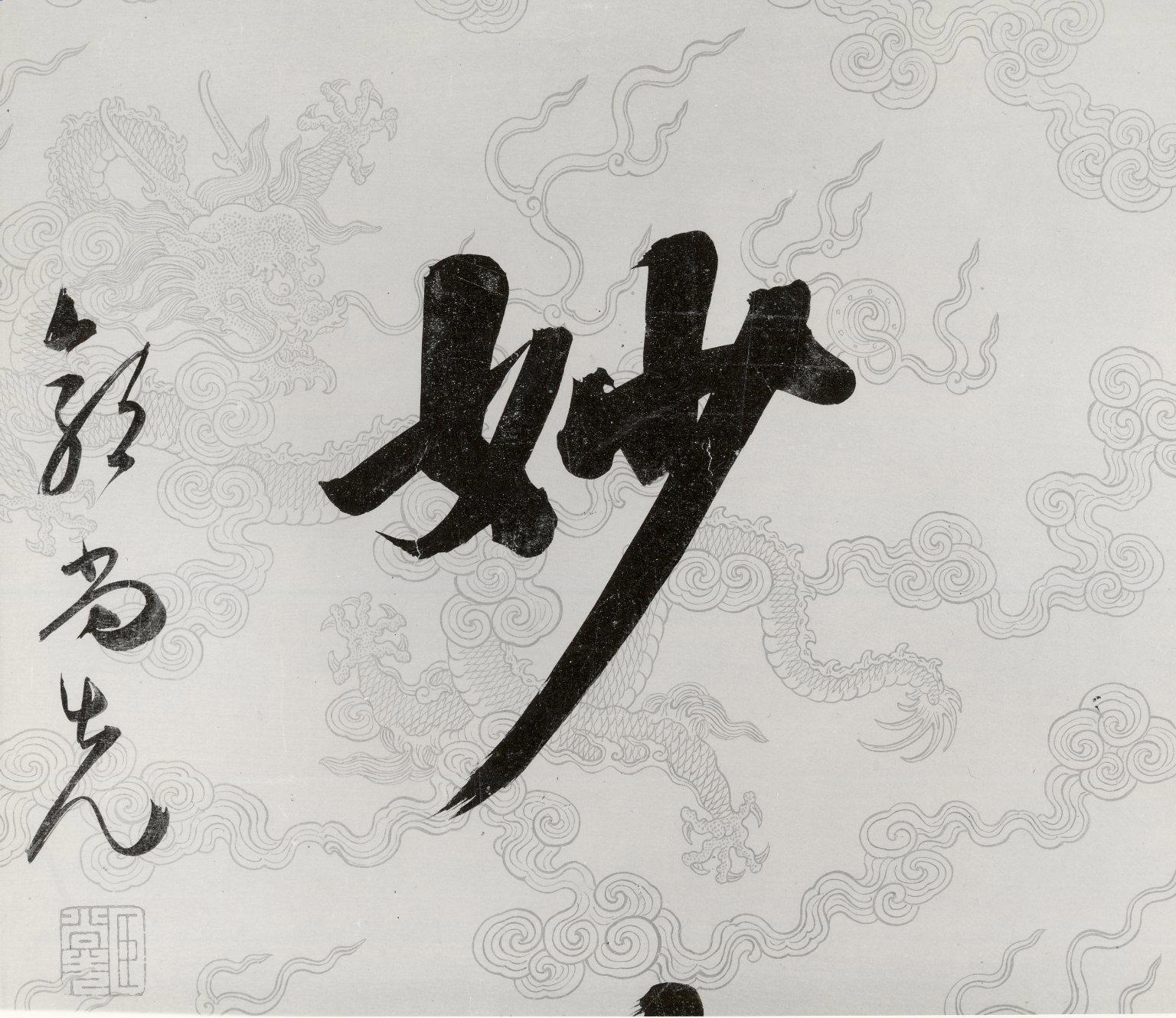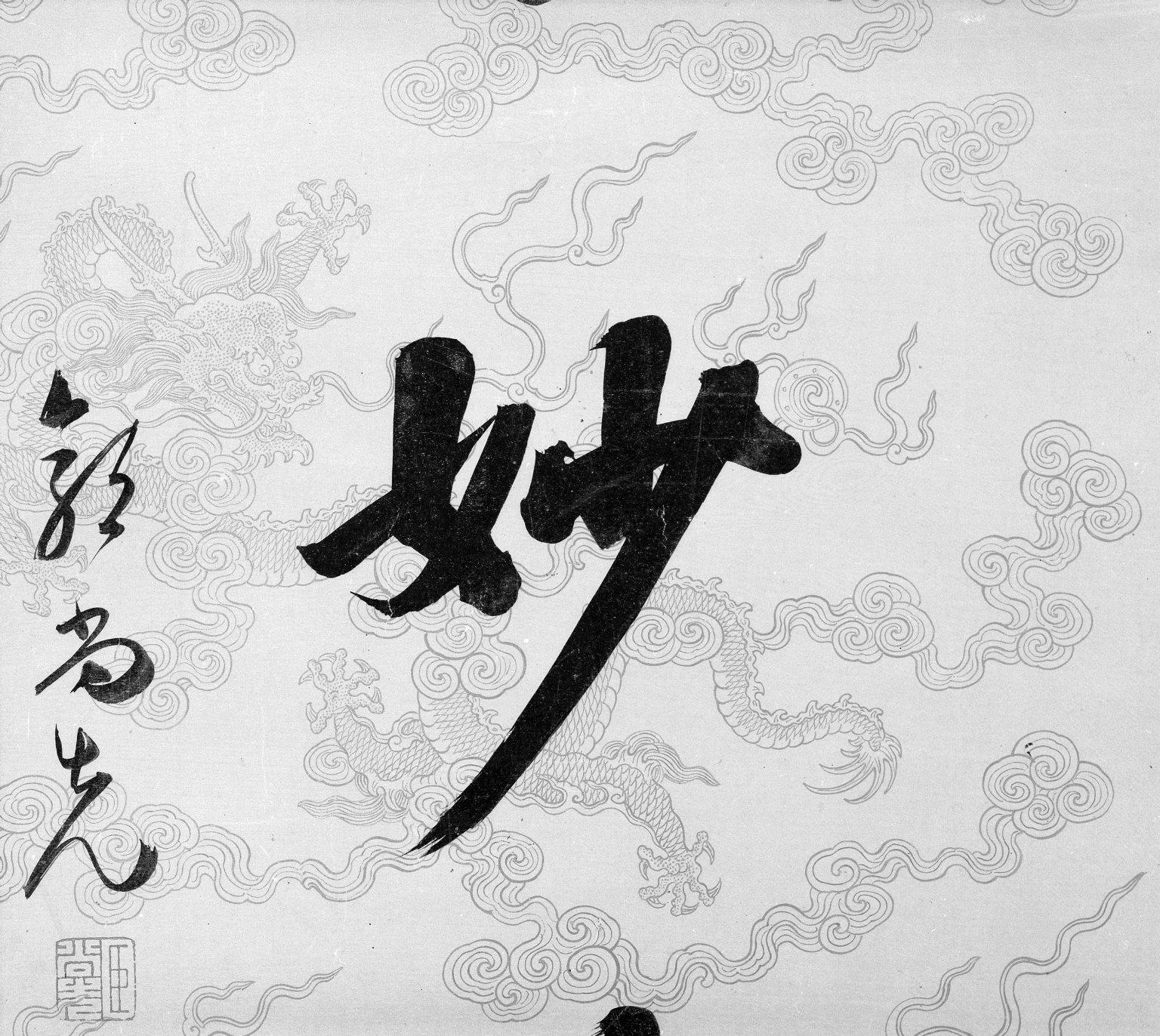 Ink on yellow paper, printed with gold and silver dragon motifs