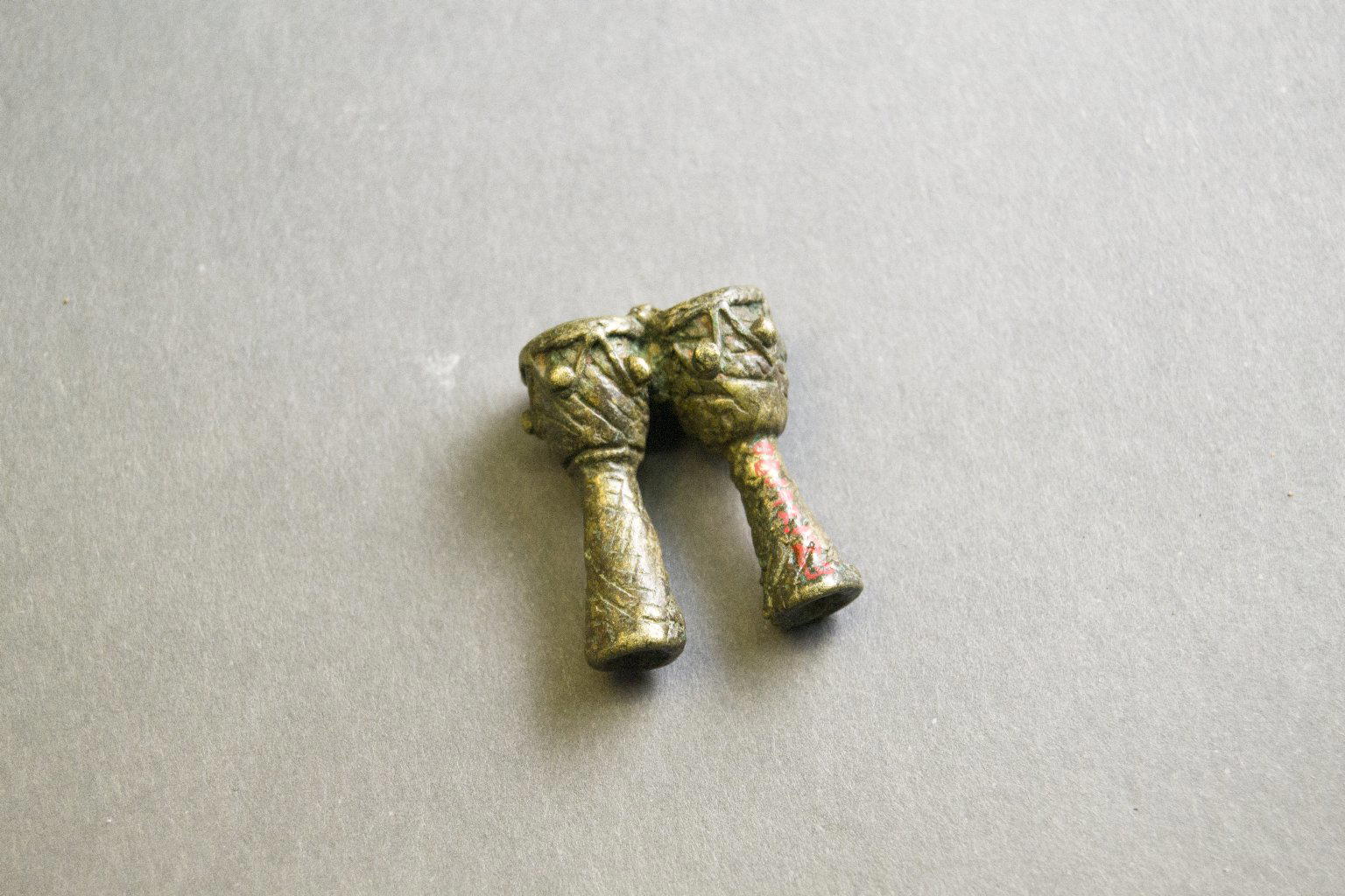 Akan. Gold-weight (abrammuo): two drums, 19th–20th century. Copper alloy, 1 1/8 x 1 x 1/2 in. Brooklyn Museum, Gift of Mr. and Mrs. Franklin H. Williams, 88.192.123. (Photo: Brooklyn Museum)