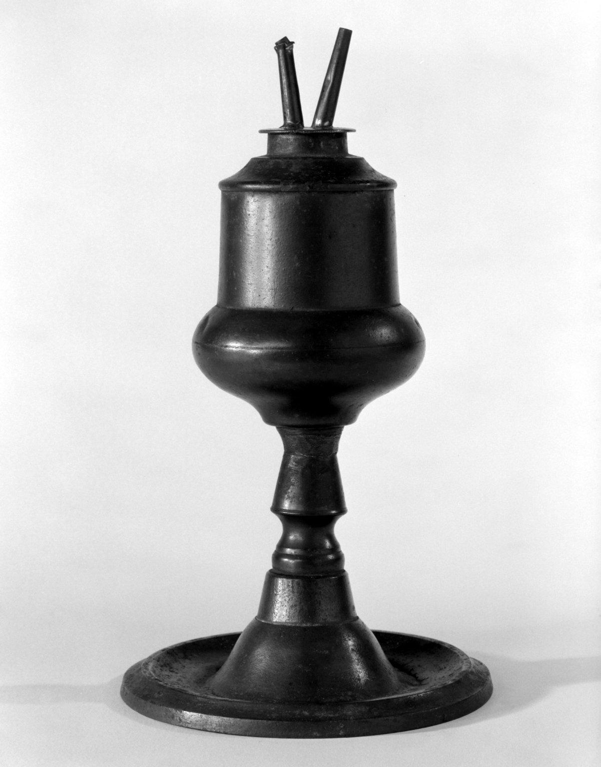 American; William H. Starr (active in New York, 1843–1846). Oil Lamp, 1843–1846. Pewter, 8 1/2 x 5 1/8 x 5 1/8 in. (21.6 x 13 x 13 cm). Brooklyn Museum, Gift of the Estate of Mrs. Lathrop C. Harper, 57.167. (Photo: Brooklyn Museum)