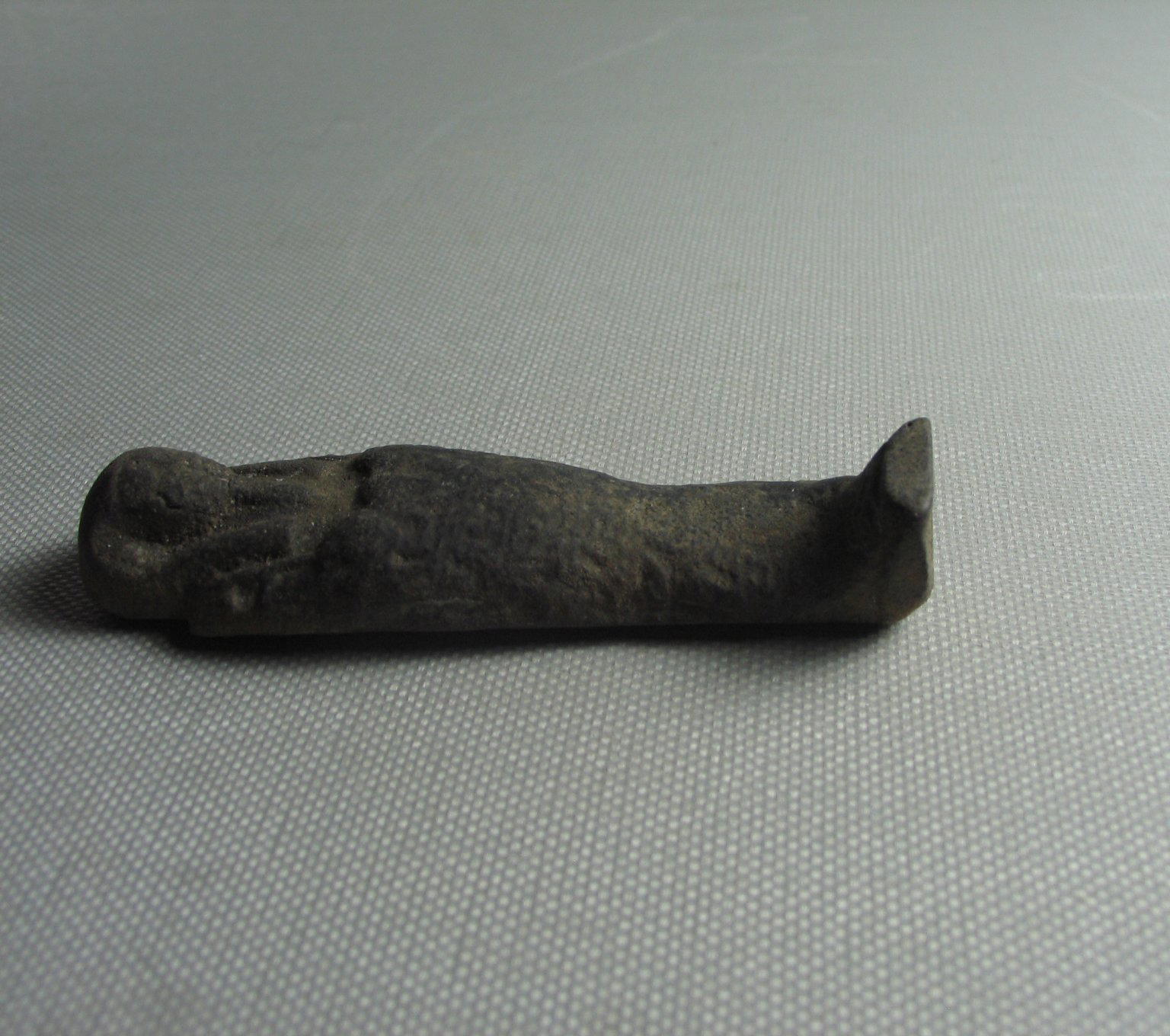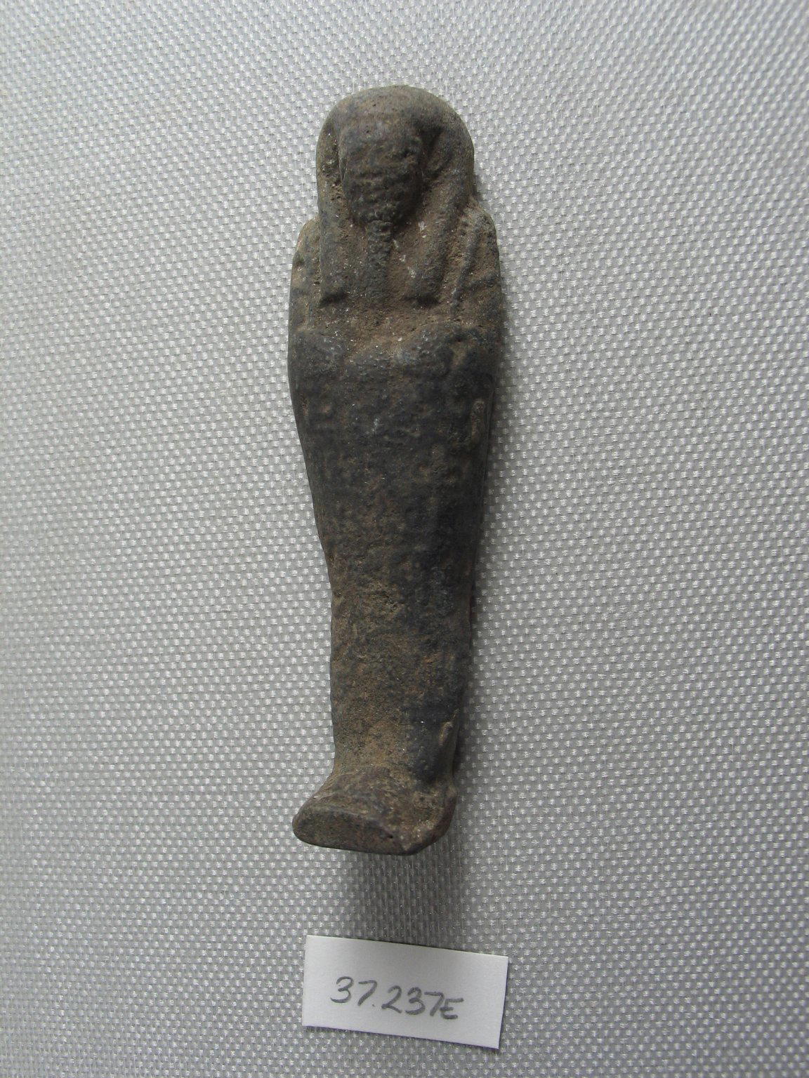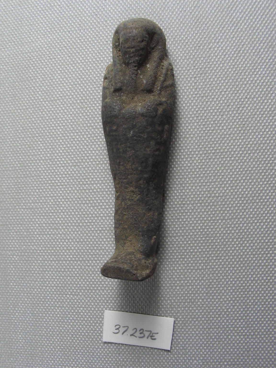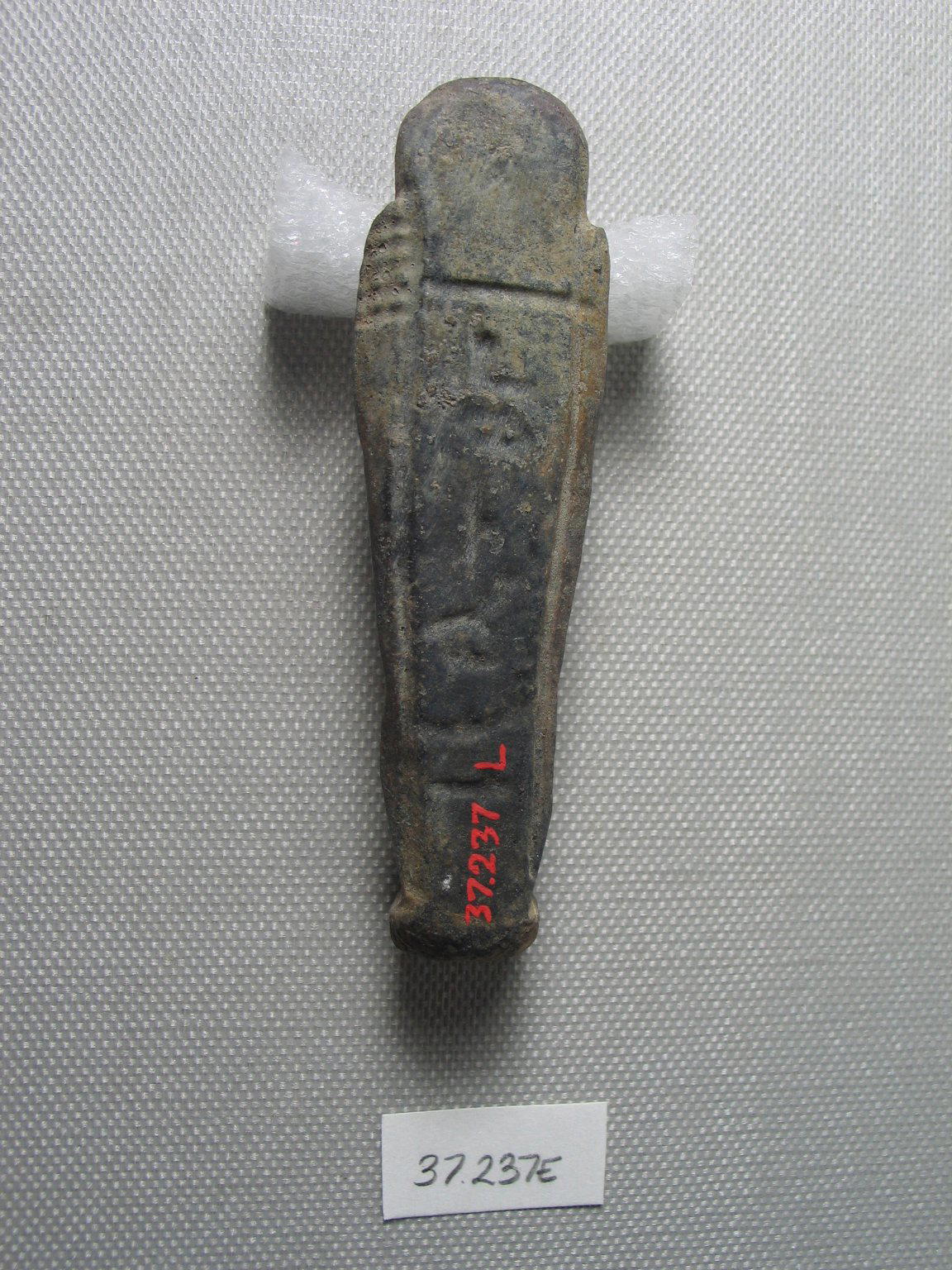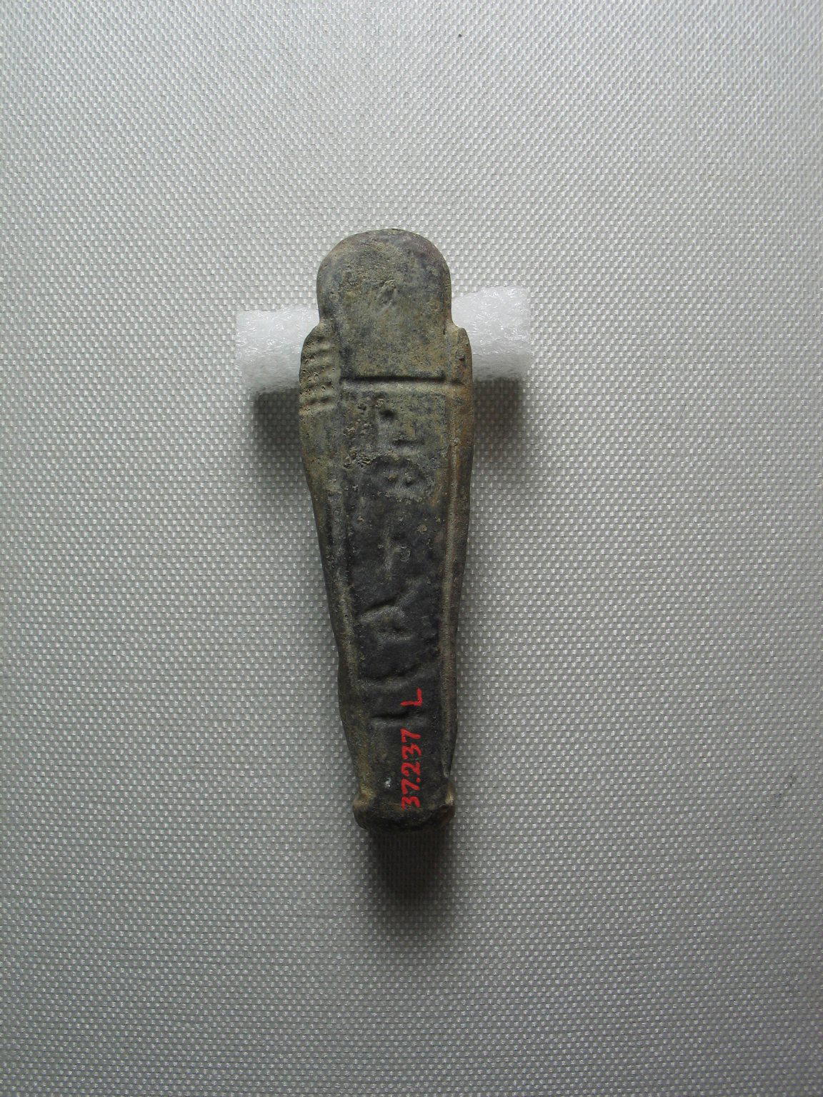 Ushabti of Yuf-o, 664–343 B.C.E.. Faience, 3 1/4 x 1 x 13/16 in. (8.3 x 2.5 x 2 cm). Brooklyn Museum, Charles Edwin Wilbour Fund, 37.237E. (Photo: Brooklyn Museum)
