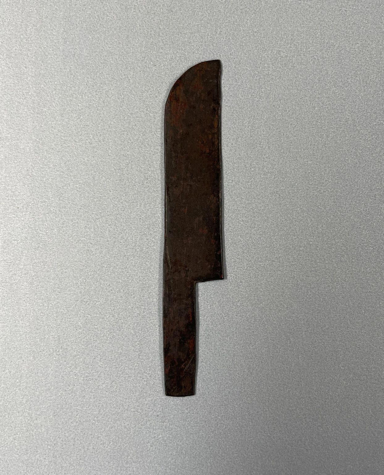 1/2 × 2 15/16 in. (1.3 × 7.5 cm) Blade: 1 15/16 in. (5 cm) Tang: 5/16 × 1 in. (0.8 × 2.5 cm) 3 1/8 × 9/16 × 1/16 in. (8 × 1.5 × 0.1 cm)