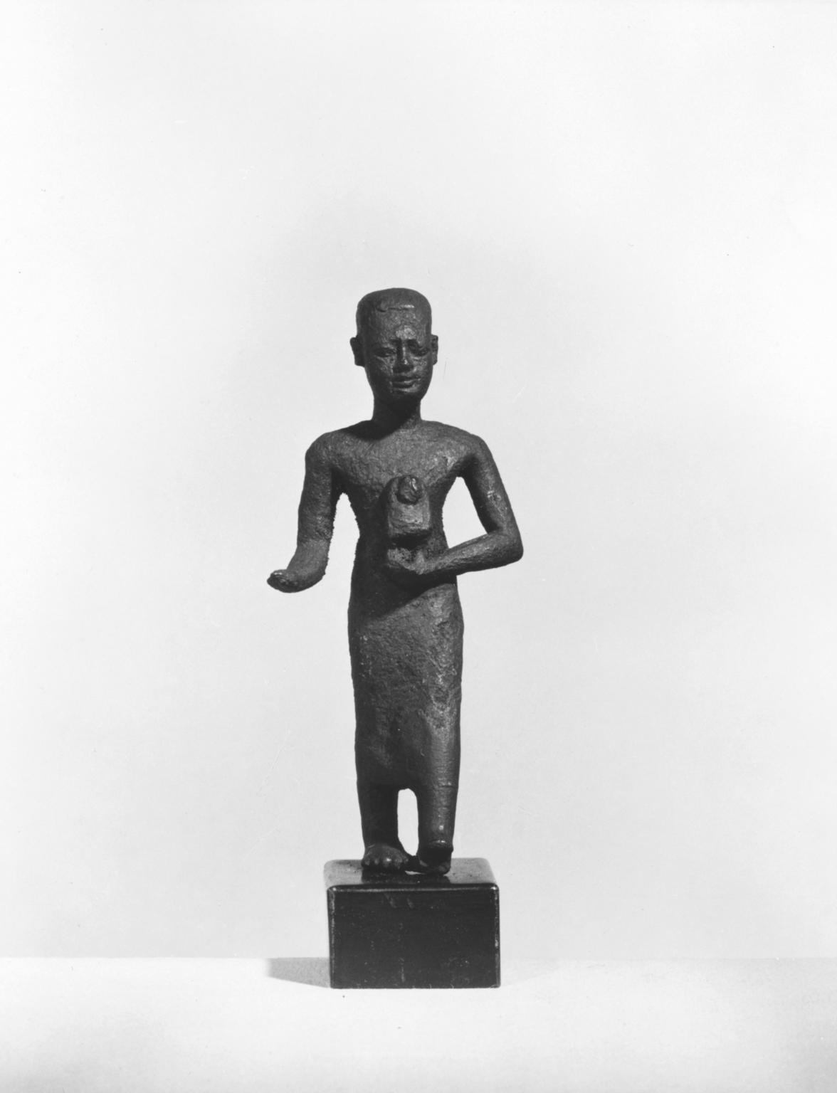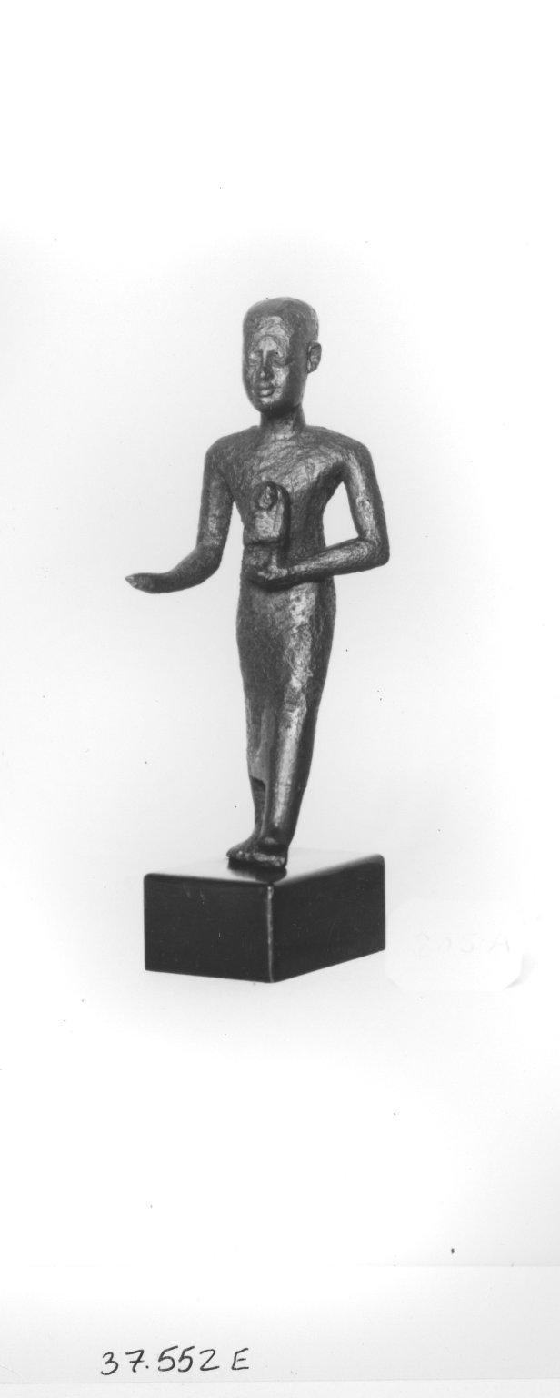 Small Figure of a Priest Walking, 664–332 B.C.E.. Bronze, 3 1/16 x 1 7/16 x 13/16 in. (7.8 x 3.6 x 2.1 cm). Brooklyn Museum, Charles Edwin Wilbour Fund, 37.552E. (Photo: Brooklyn Museum)