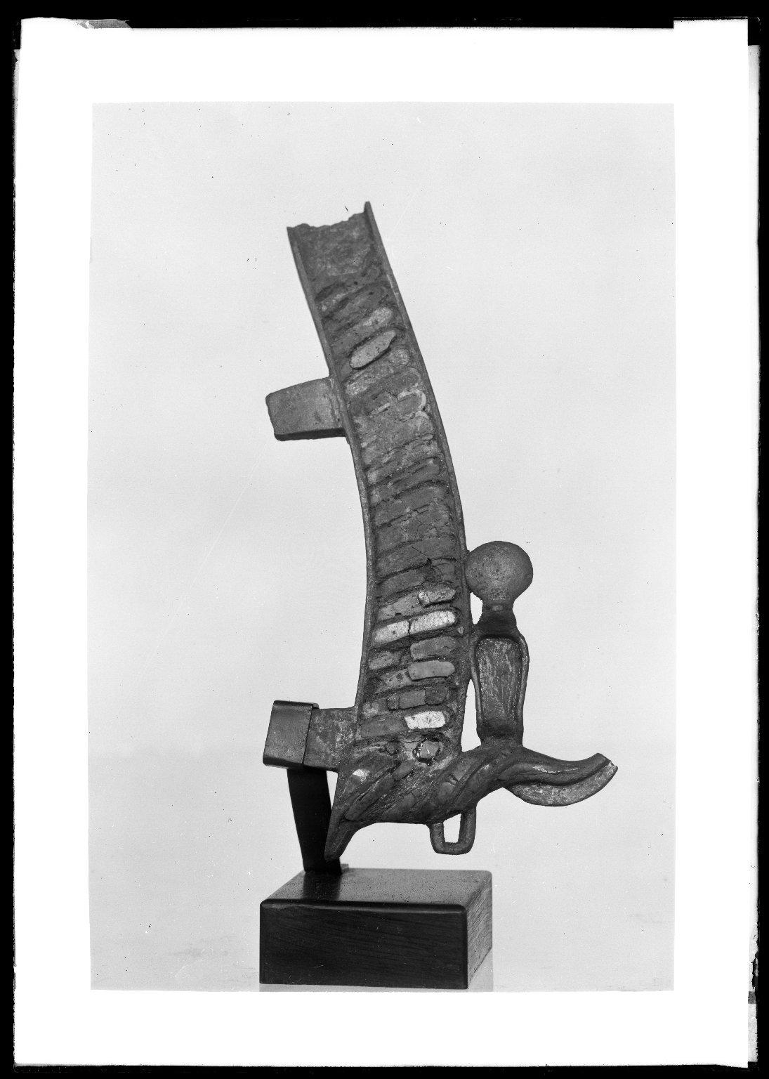 Fragment of a Headdress of a Statuette of a God, 664–30 B.C.E.. Bronze, glass, 4 5/8 × 2 5/16 in. (11.8 × 5.9 cm). Brooklyn Museum, Charles Edwin Wilbour Fund, 37.675E. (Photo: Brooklyn Museum)
