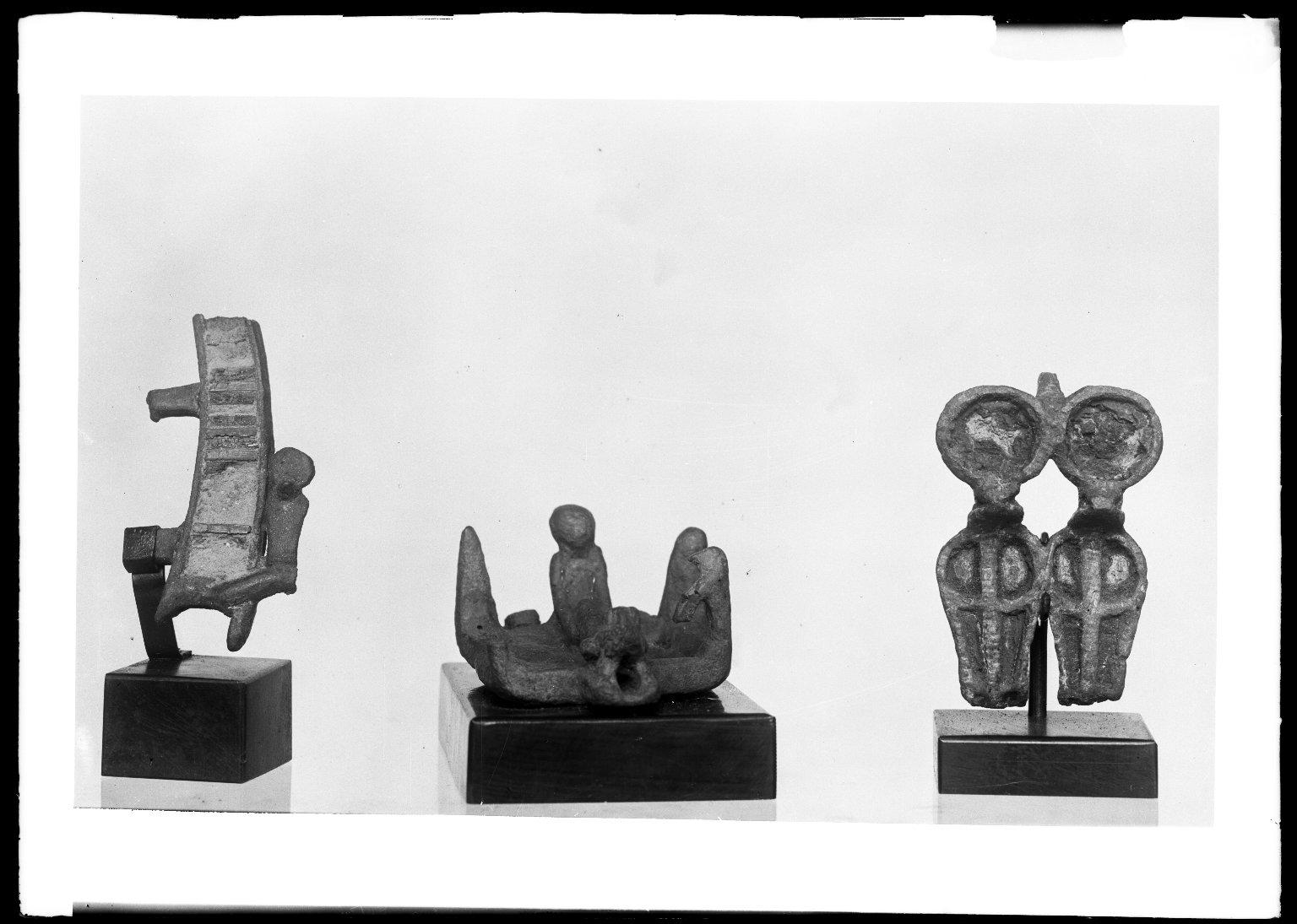 Small Fragment of a Headdress of a Statuette of Two Uraei, 664–30 B.C.E.. Bronze, paste, 1 3/4 × 1 1/8 in. (4.5 × 2.9 cm). Brooklyn Museum, Charles Edwin Wilbour Fund, 37.676E.