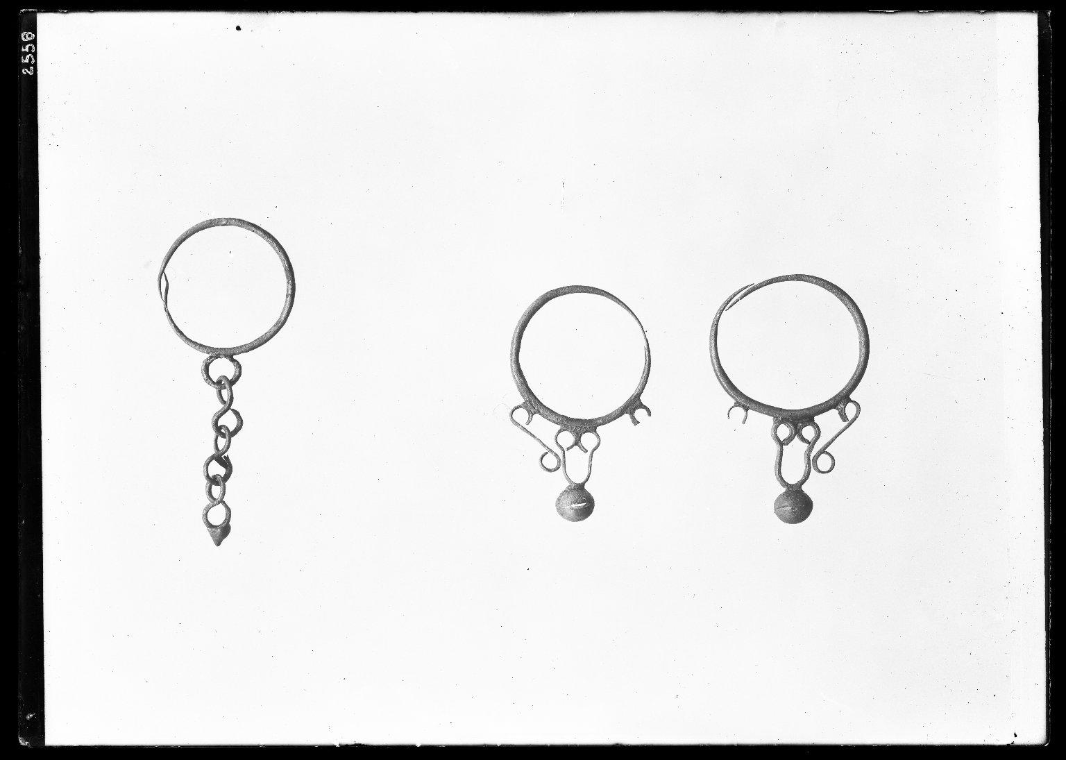 Earring with Large Circular Loop which Decends a Chain, 305–30 B.C.E. or 30 B.C.E.–395 C.E.. Bronze, gold, 2 3/16 × Diam. 15/16 in. (5.5 × 2.4 cm). Brooklyn Museum, Charles Edwin Wilbour Fund, 37.755E.
